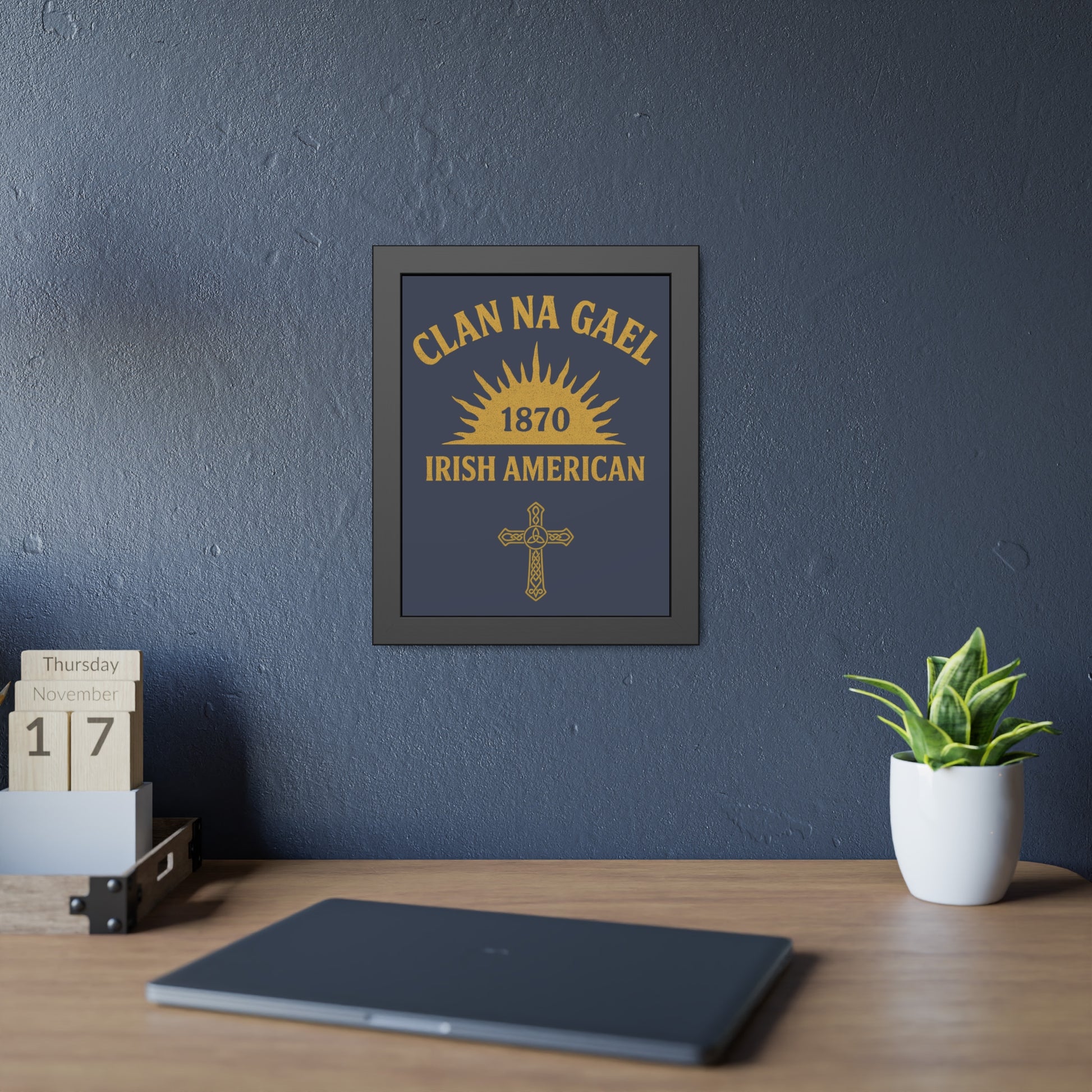 "Clan na Gael - Irish American", Framed Paper Poster (Blue Burka Grey)