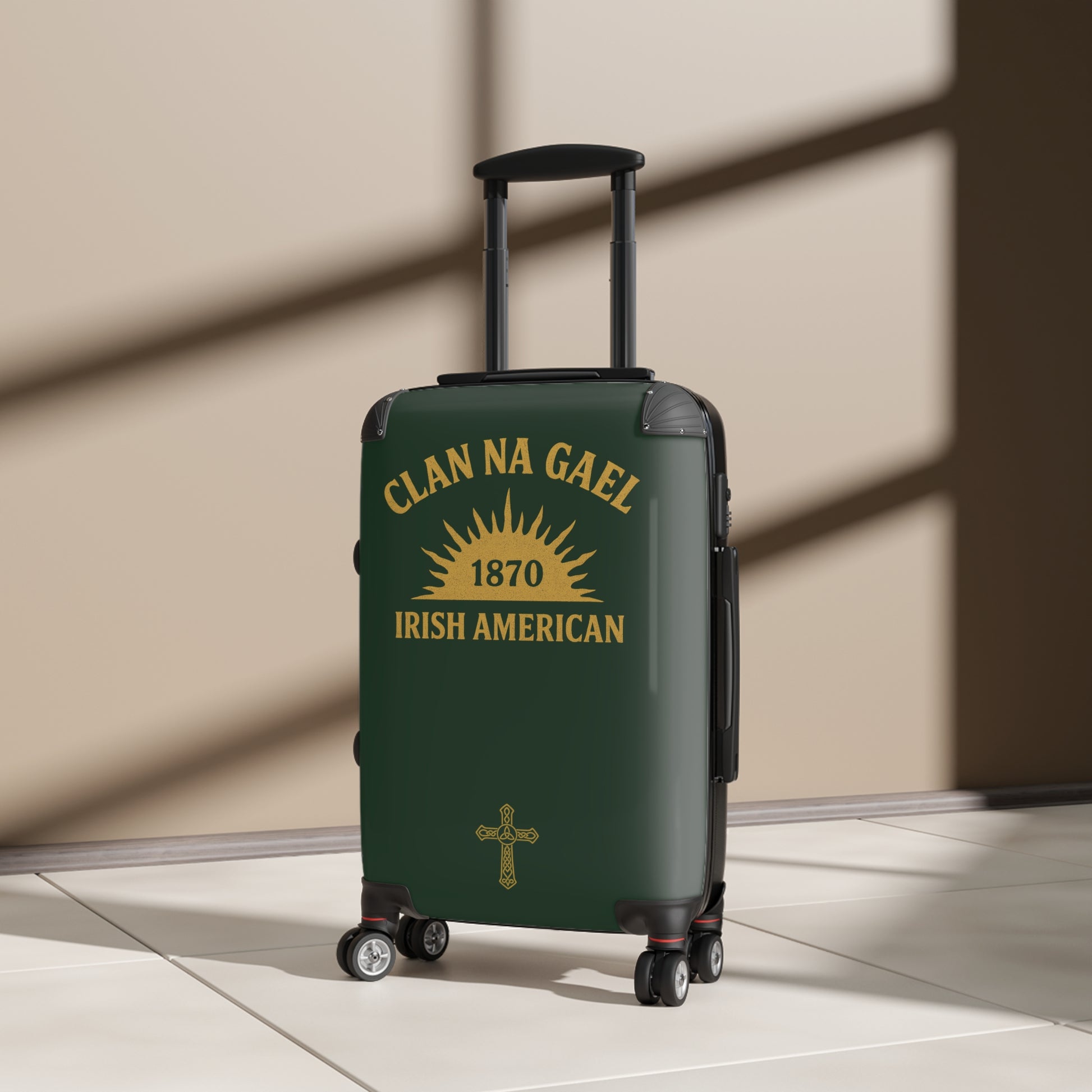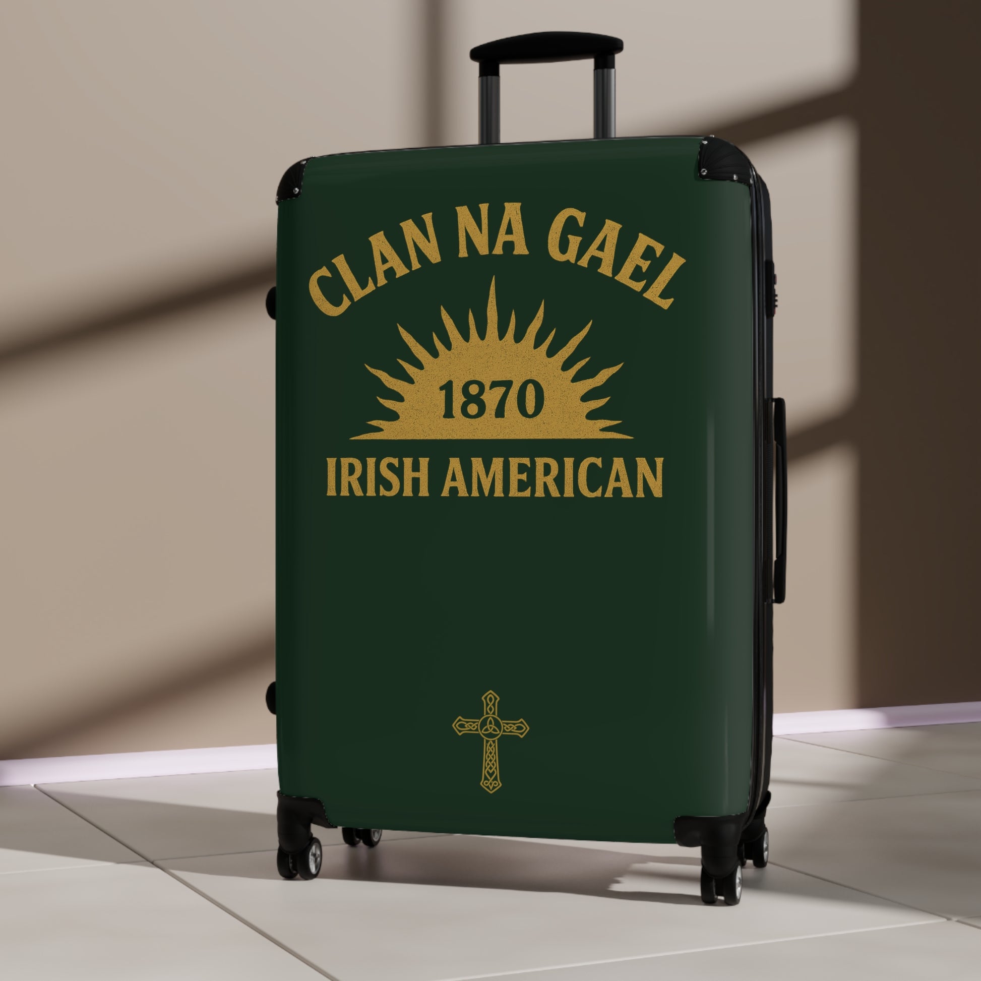 A salute to the long, unbroken thread of Irish heritage in America. The year 1870 marks the moment the Irish-American organization "Clan na Gael" adopted that name, meaning "Family of the Gaels". Centered in the artwork is the rising sun, first used by the Irish Republican Brotherhood as a symbol of renewal, resolve, and the dawning of freedom. A proud, gold Gaelic Christian Cross is naturally positioned below the primary design. Clan na Gael became the largest single financier of both the Easter Rising and the Irish War of Independence.