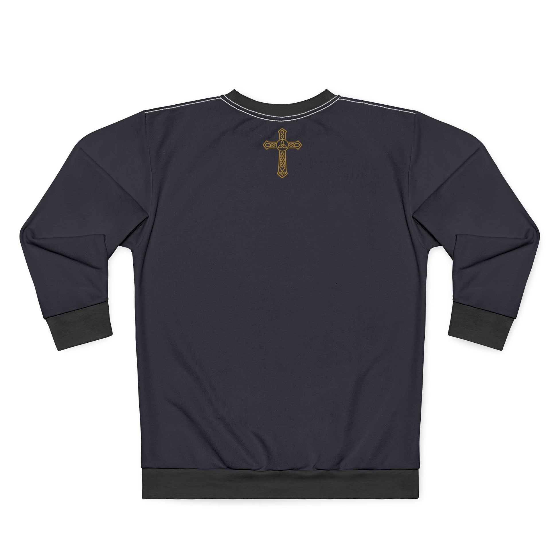 - A gold Christian High Cross with Gaelic knotwork.
