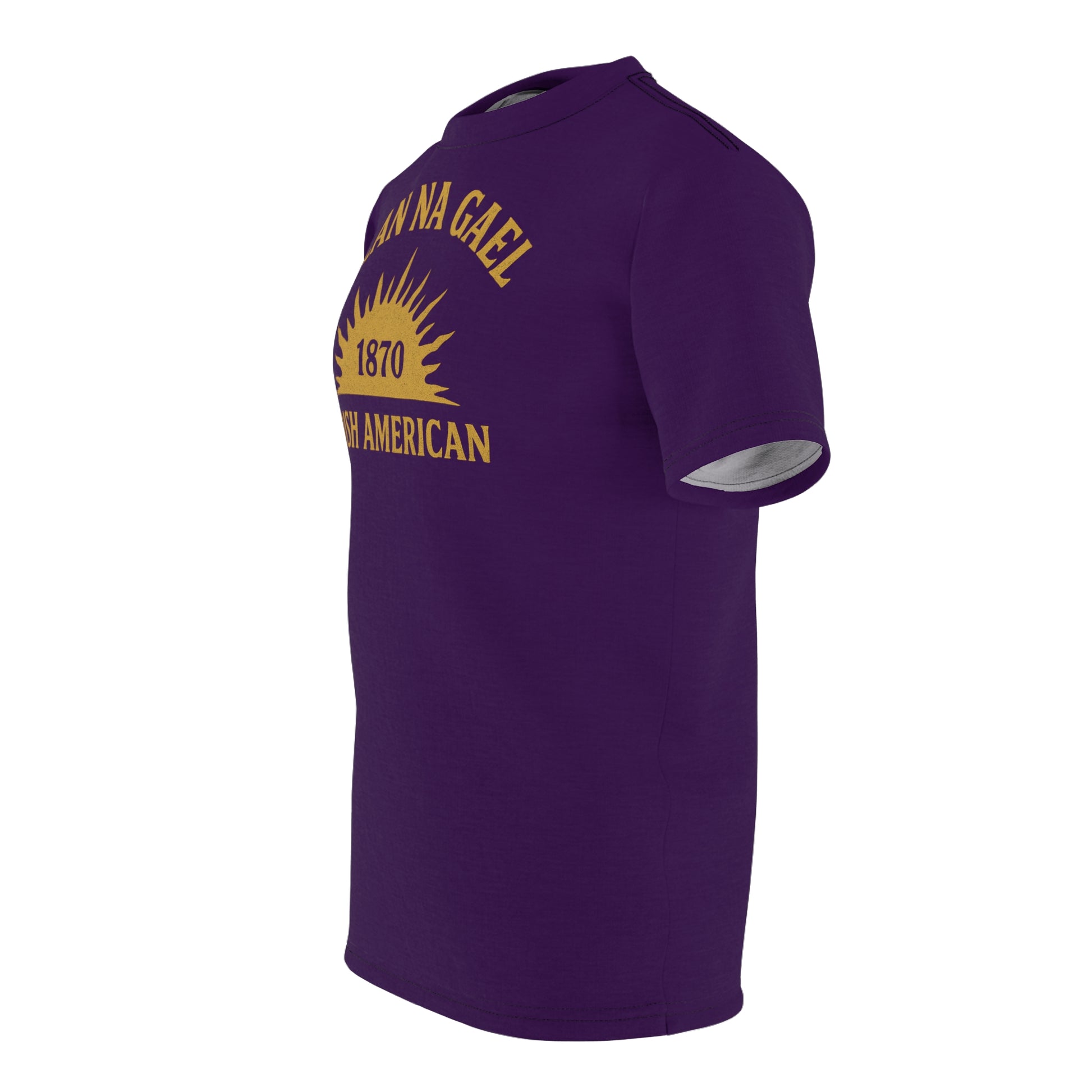 - Bold Gaelic lettering arched over the IRB rising sun, with 1870 centered inside.