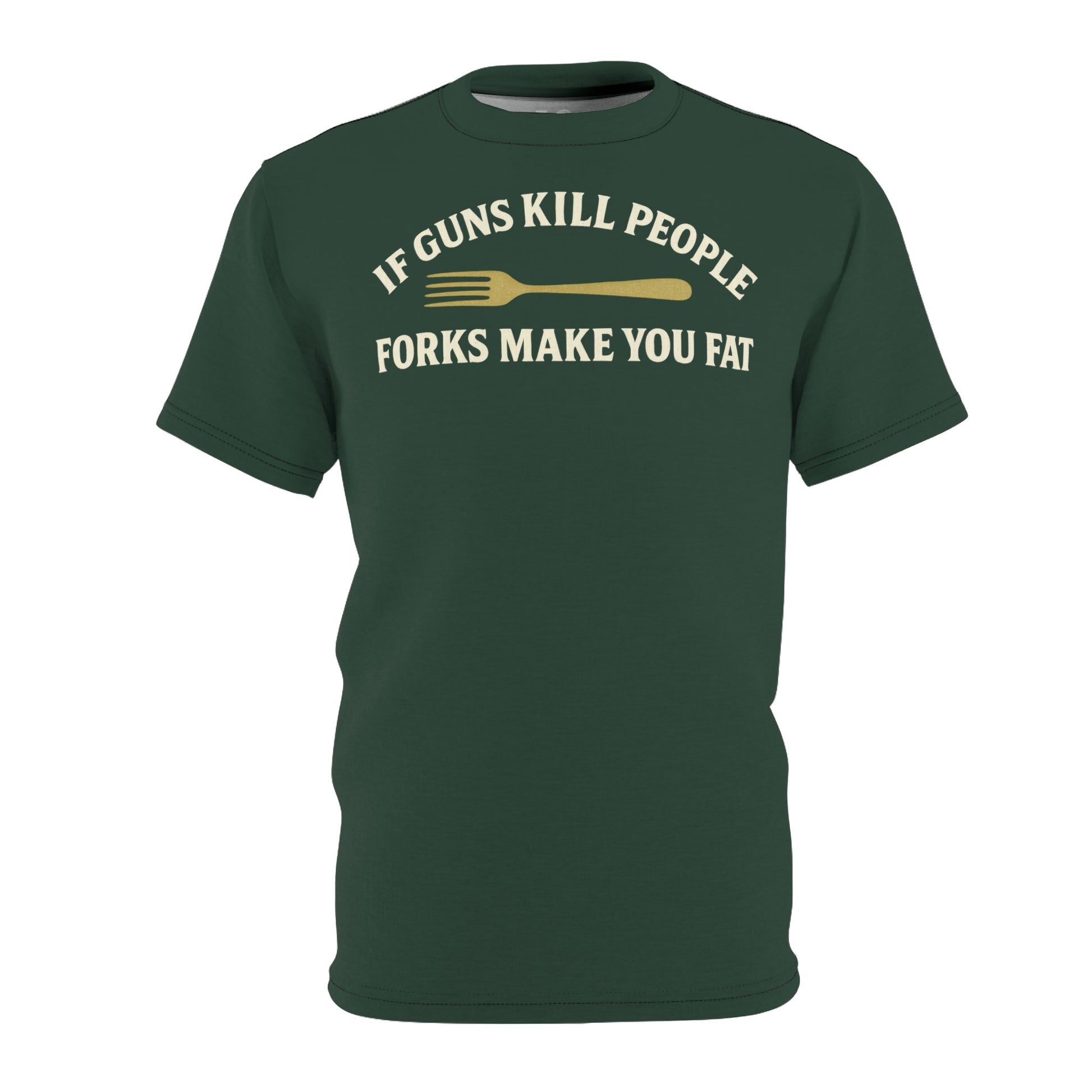 ''Forks Make You Fat", Unisex T-shirt (Black Forest Green)