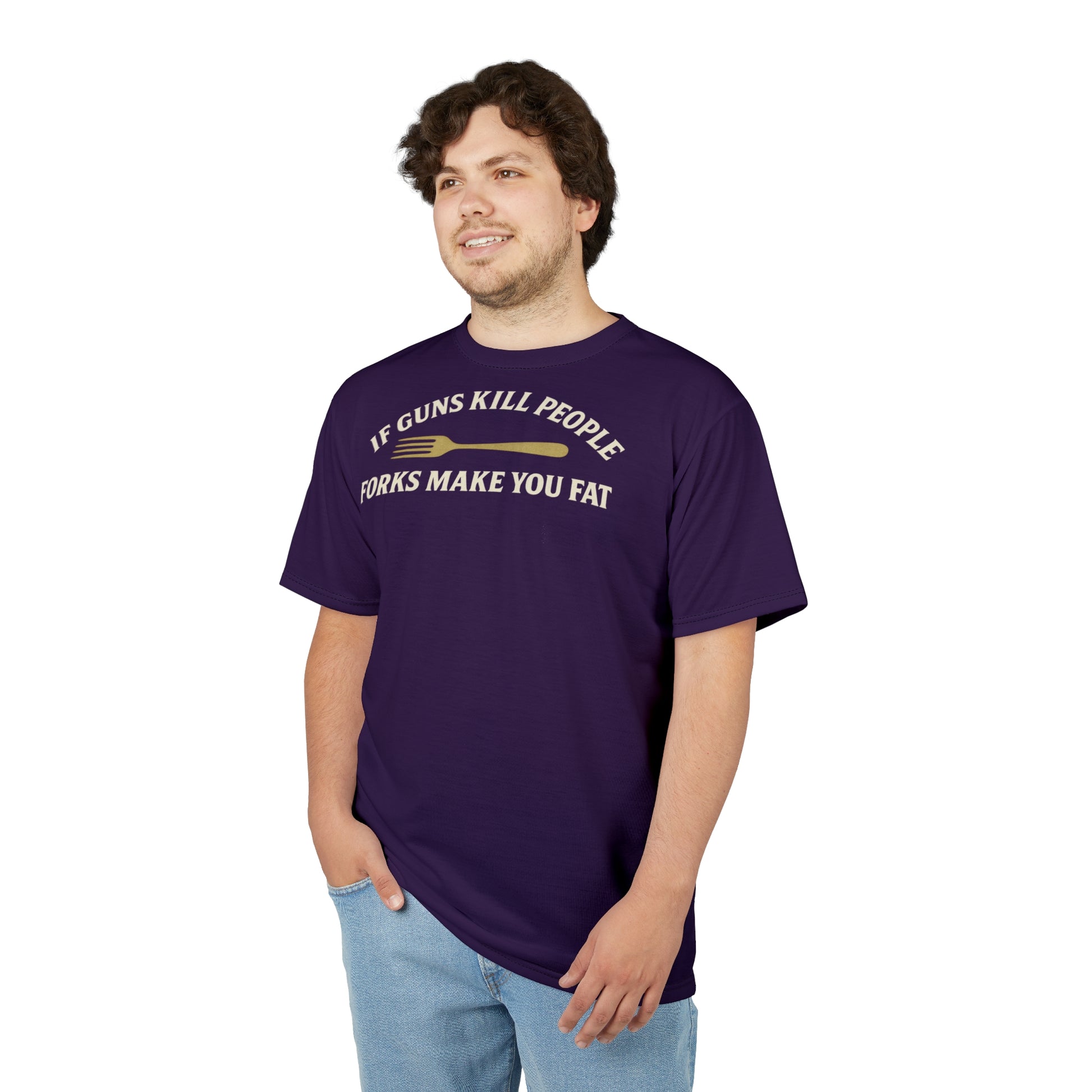 ''Forks Make You Fat", Unisex T-shirt (Academic Purple)