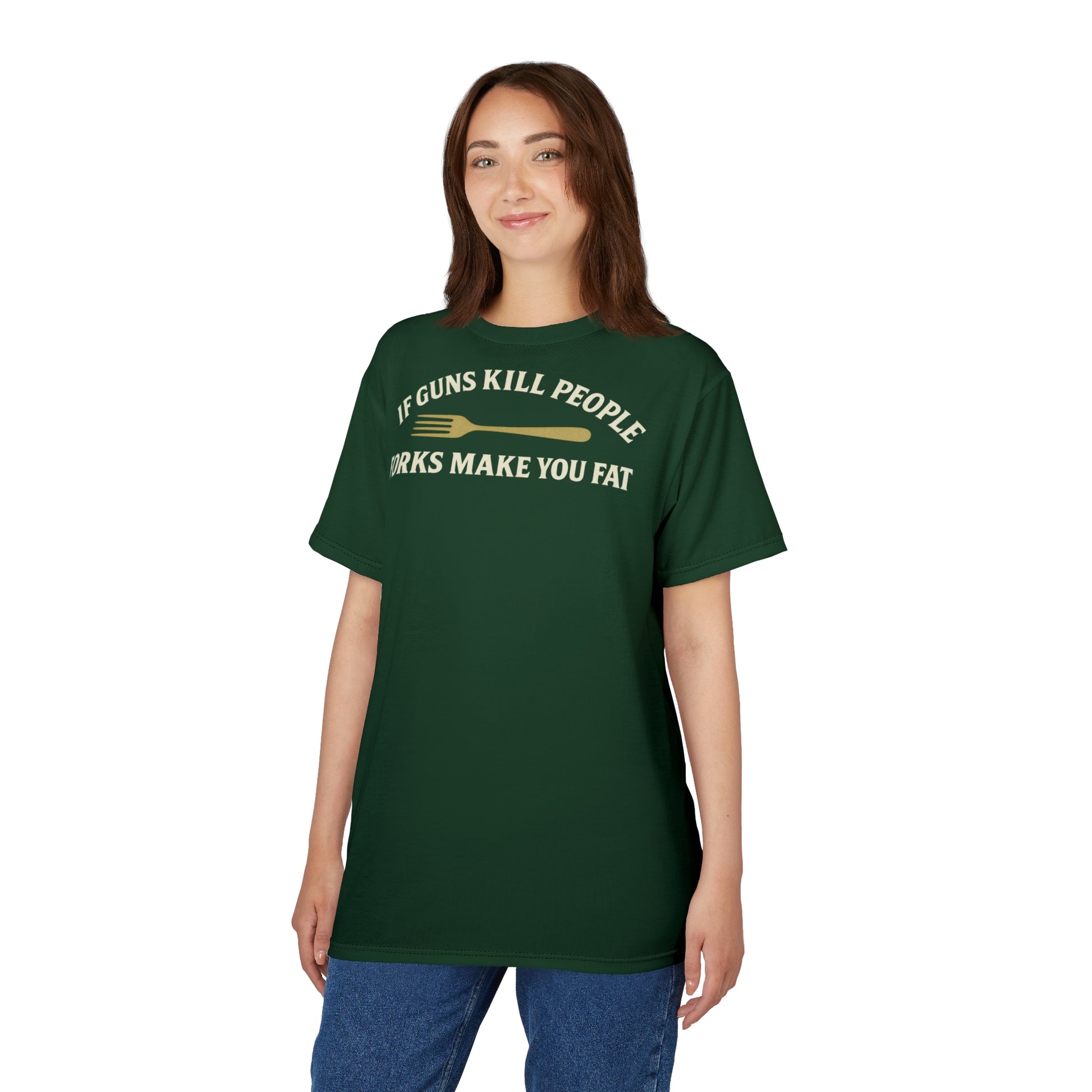 ''Forks Make You Fat", Unisex T-shirt (Monsoon Green)