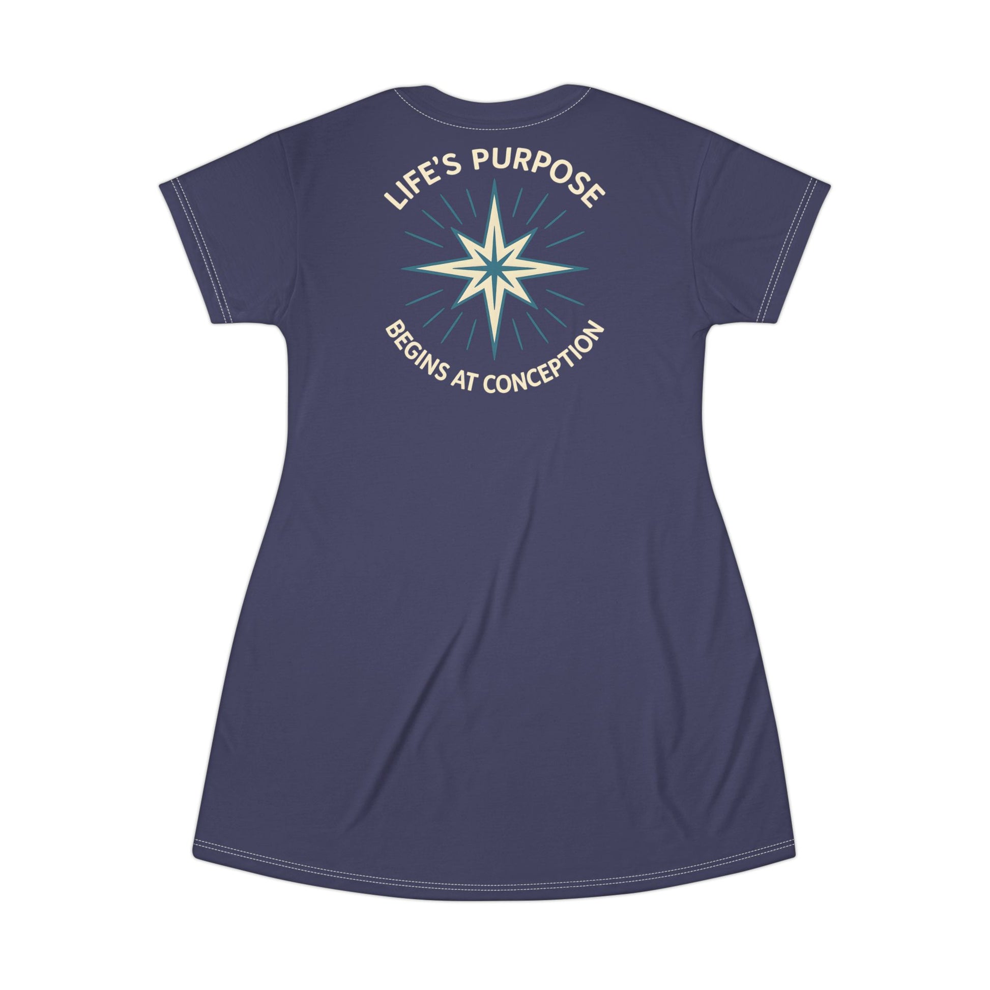 "Life's Purpose Begins at Conception #01", T-Shirt Dress (Ancient Storm)