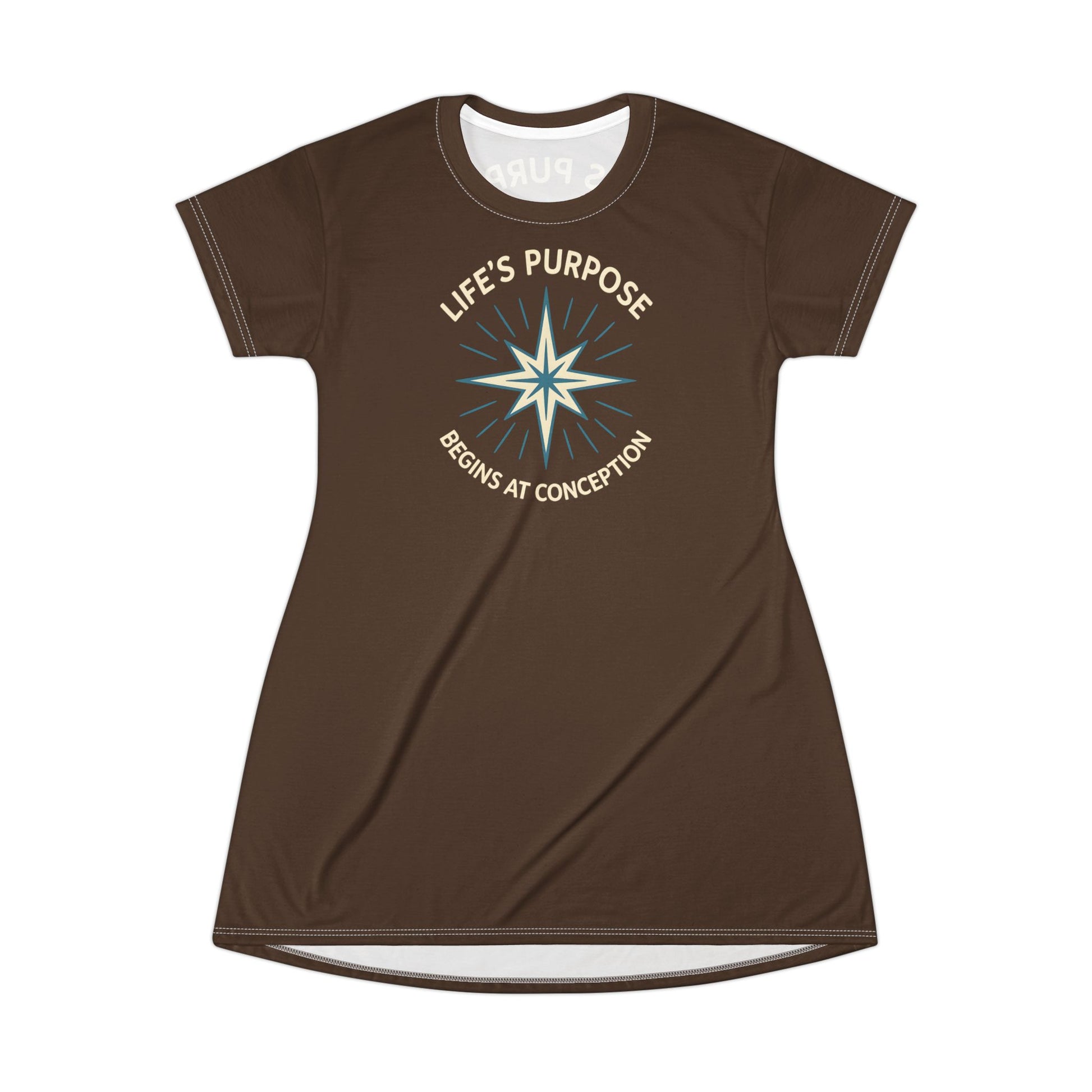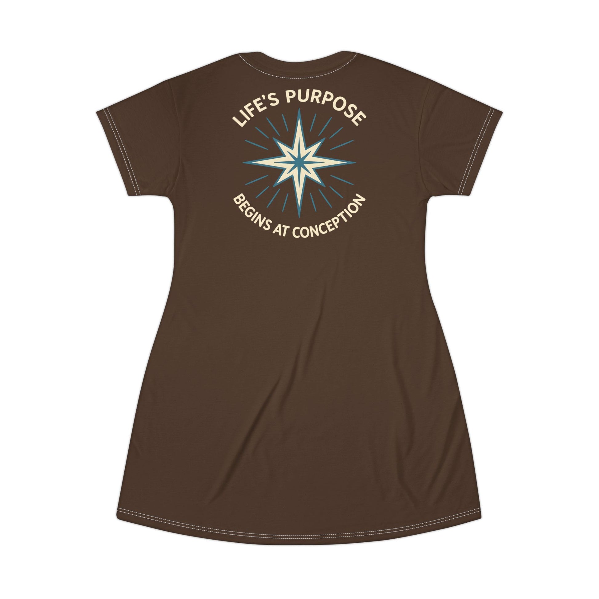 "Life's Purpose Begins at Conception #01", T-Shirt Dress (Bavarian Brown)