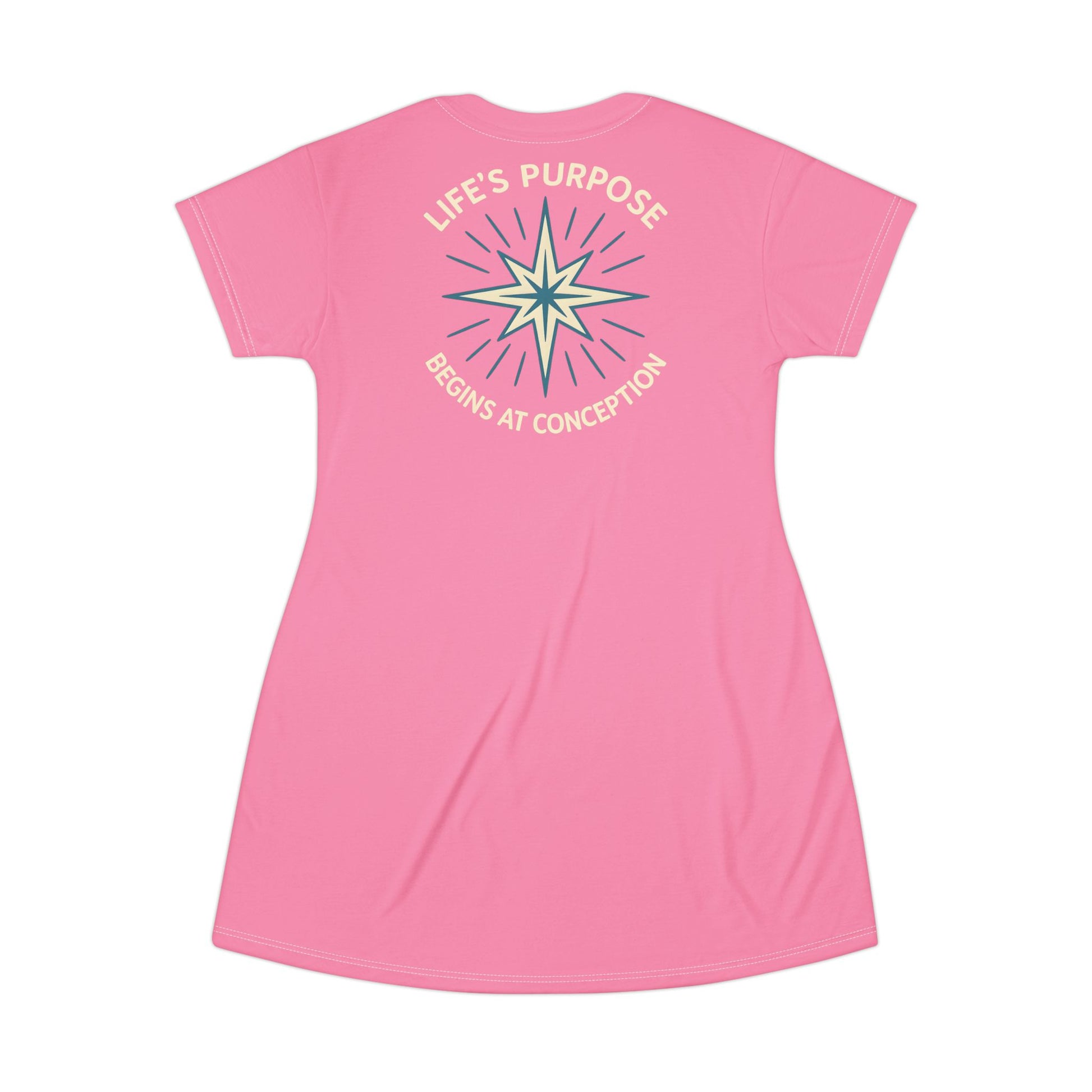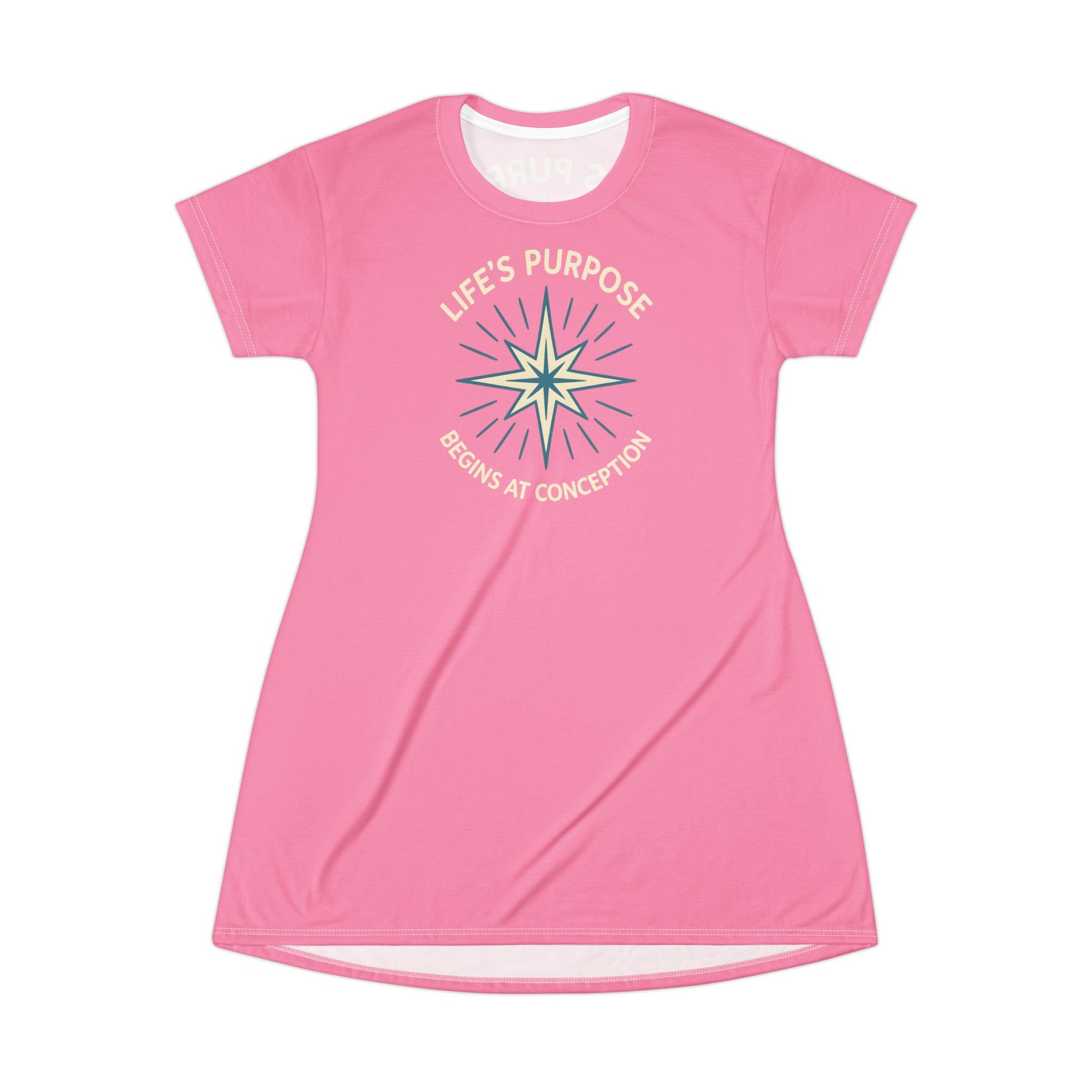 "Life's Purpose Begins at Conception #01", T-Shirt Dress (Carnation Pink)