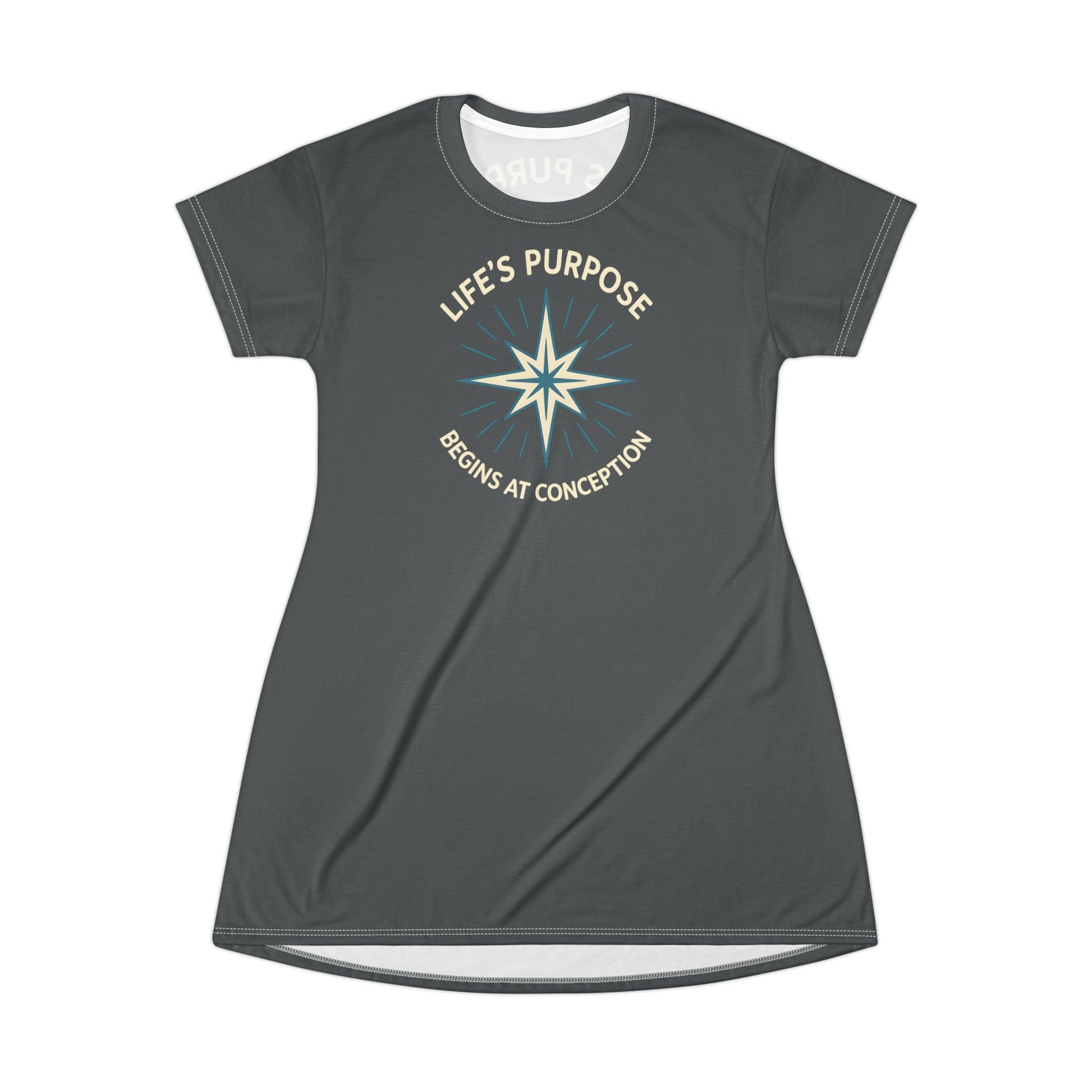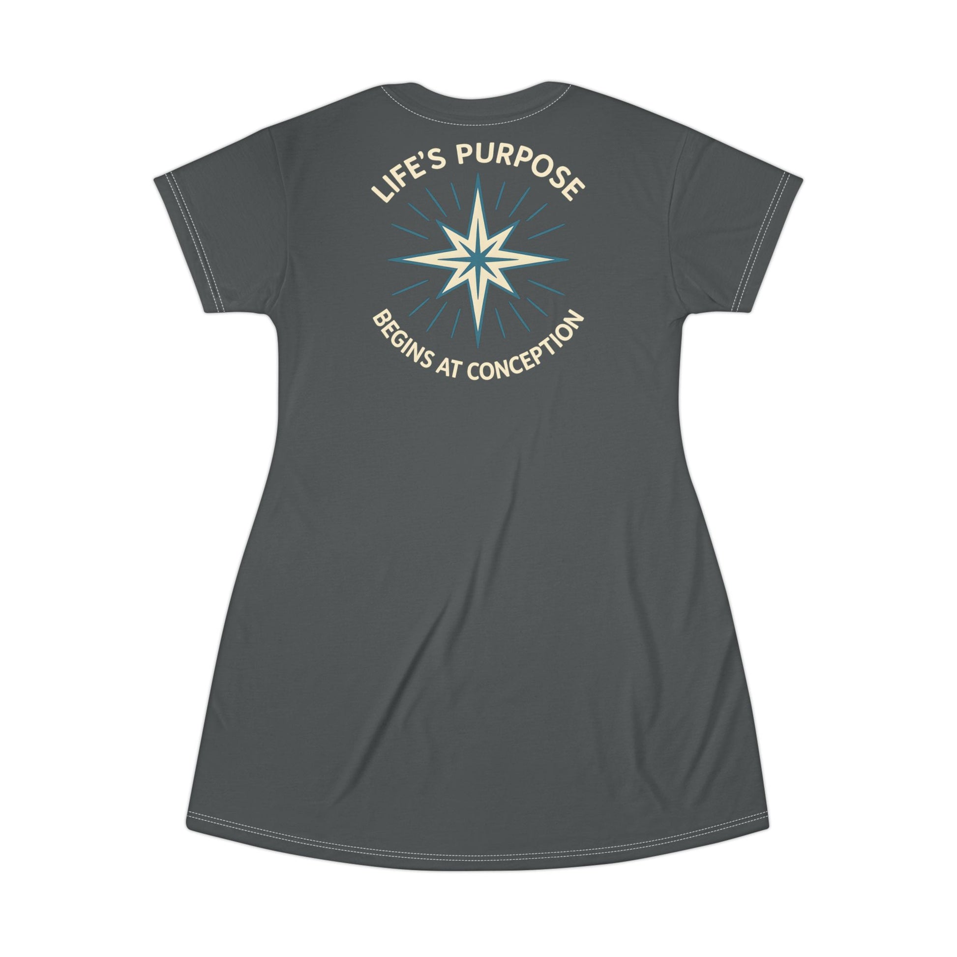 "Life's Purpose Begins at Conception #01", T-Shirt Dress (Mako Grey)