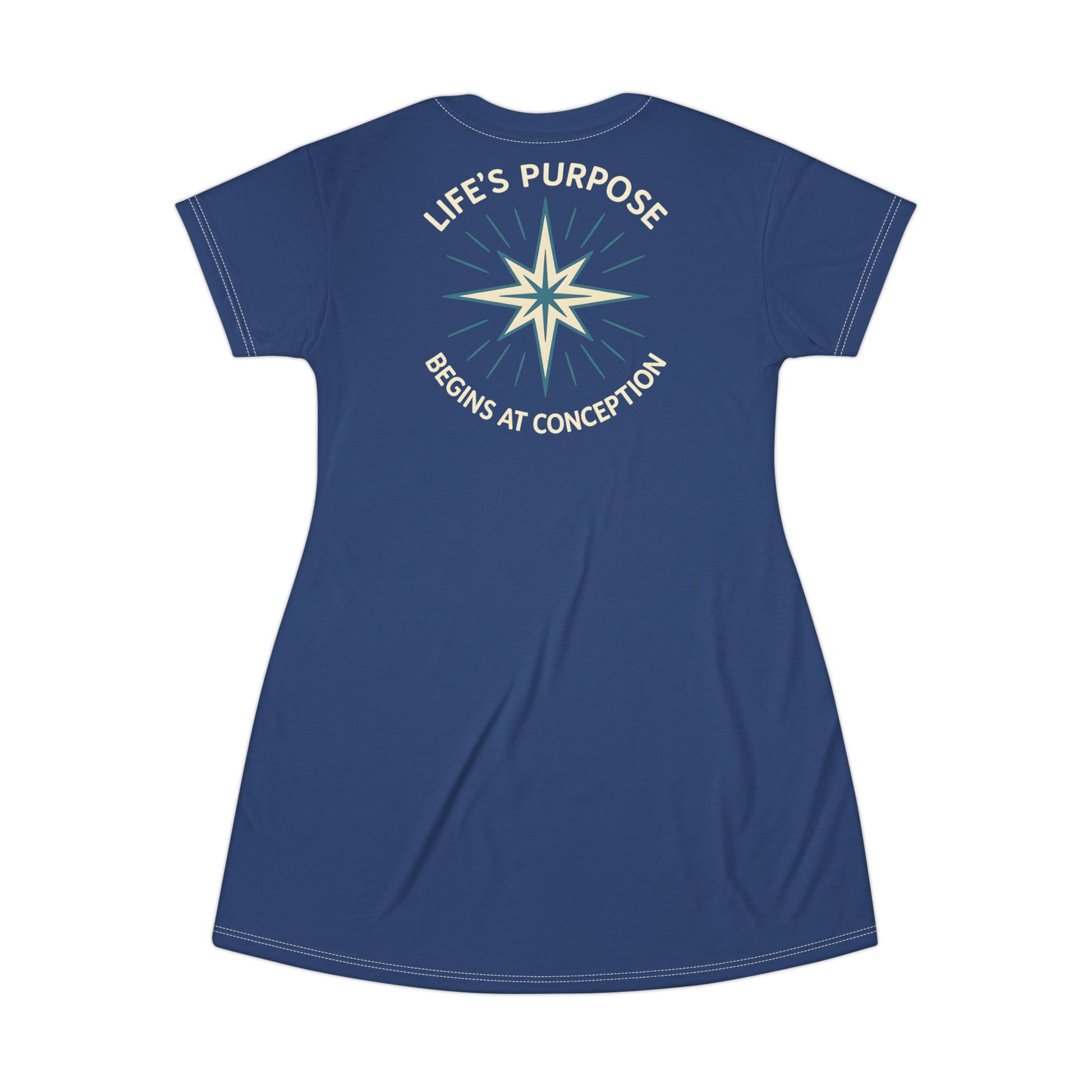 "Life's Purpose Begins at Conception #01", T-Shirt Dress (Mermaid Blues)