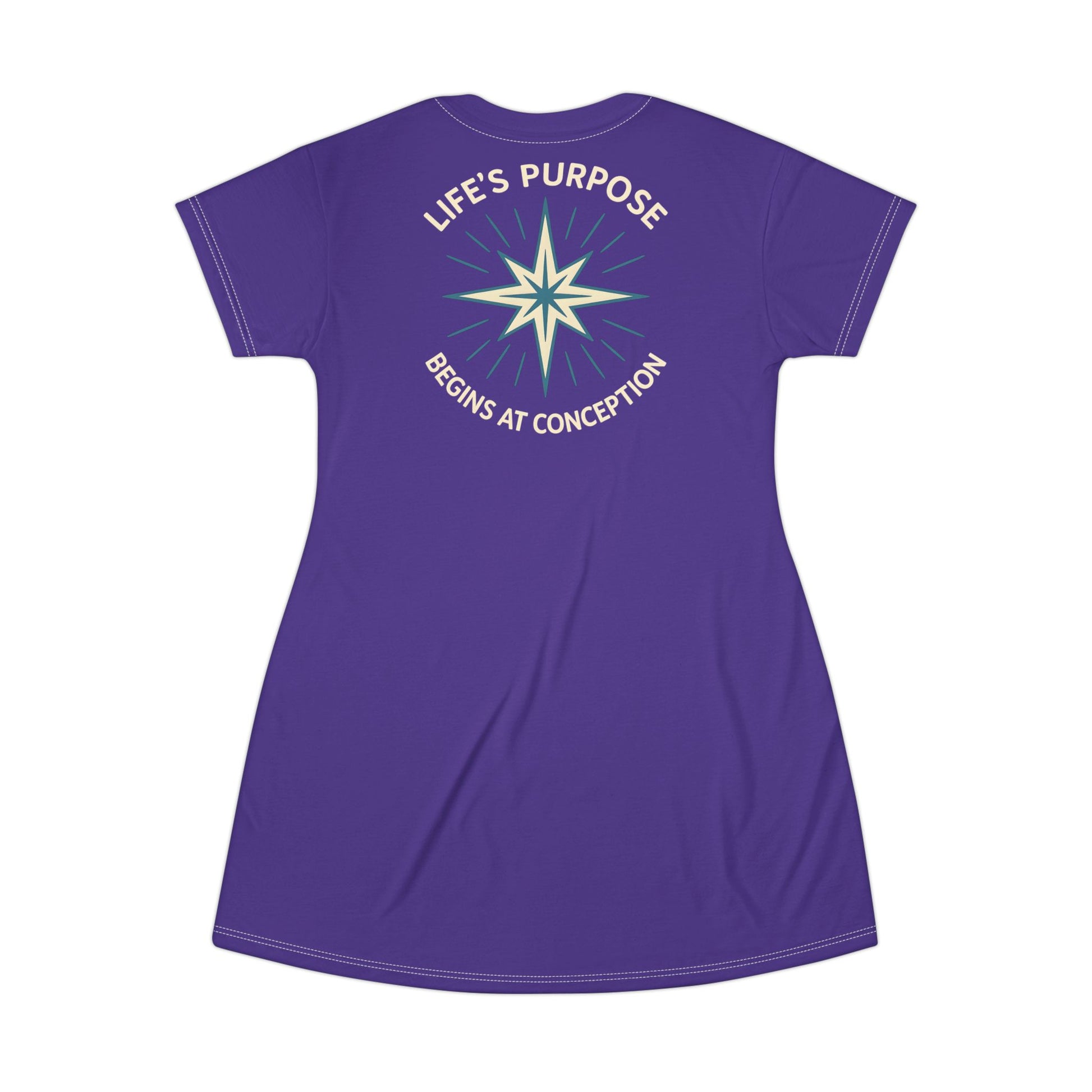 "Life's Purpose Begins at Conception #01", T-Shirt Dress (Night Music)