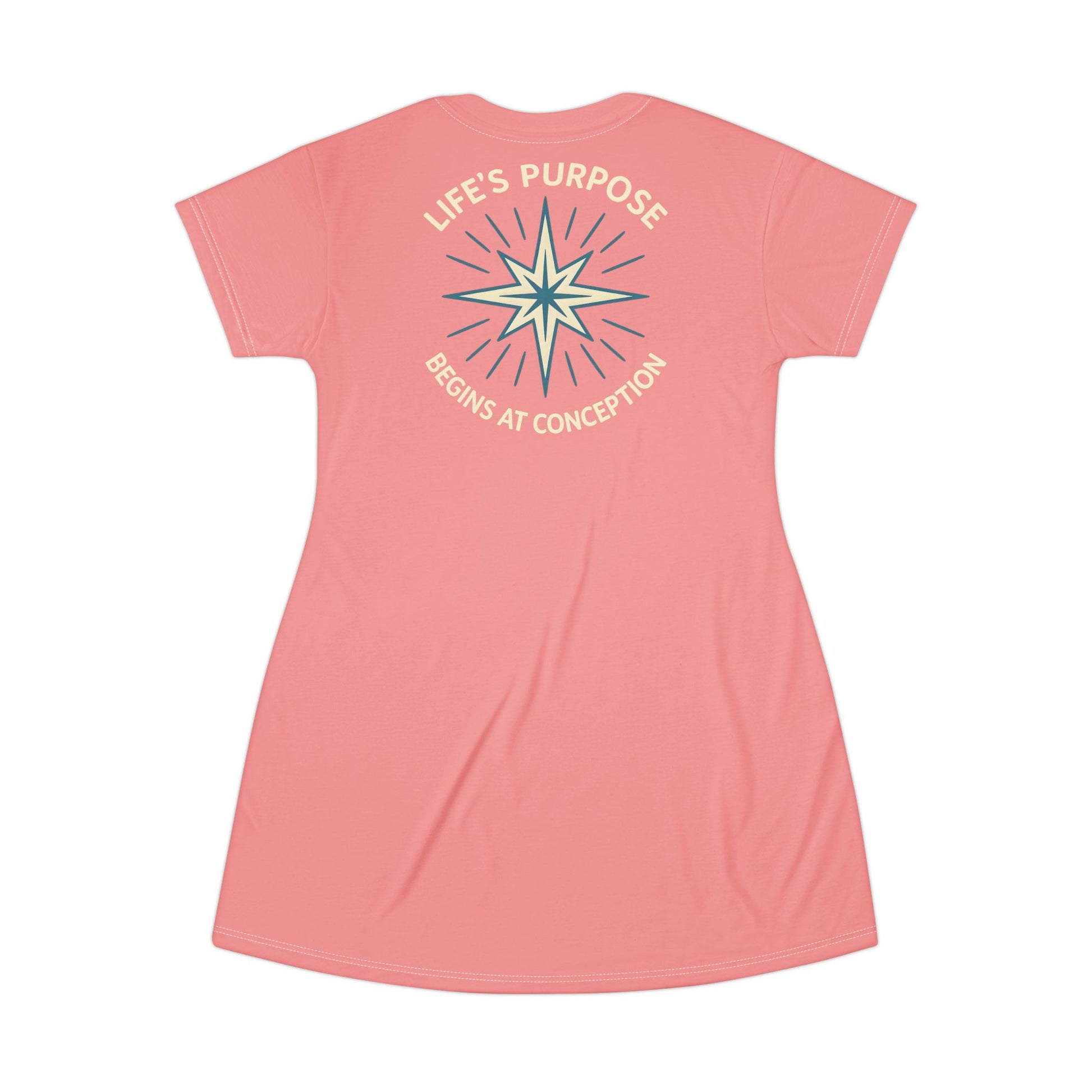 "Life's Purpose Begins at Conception #01", T-Shirt Dress (Pastel Red)