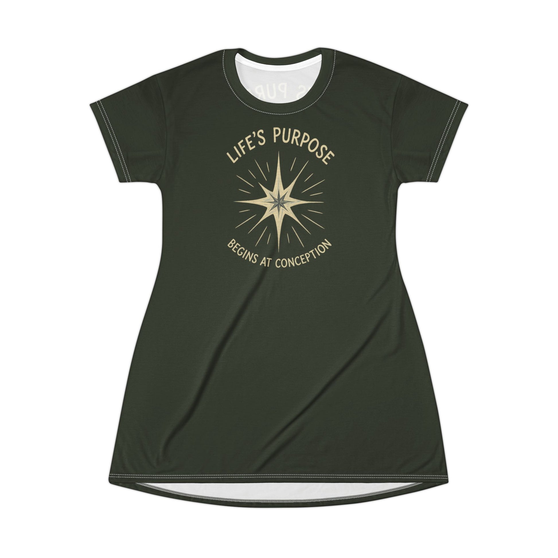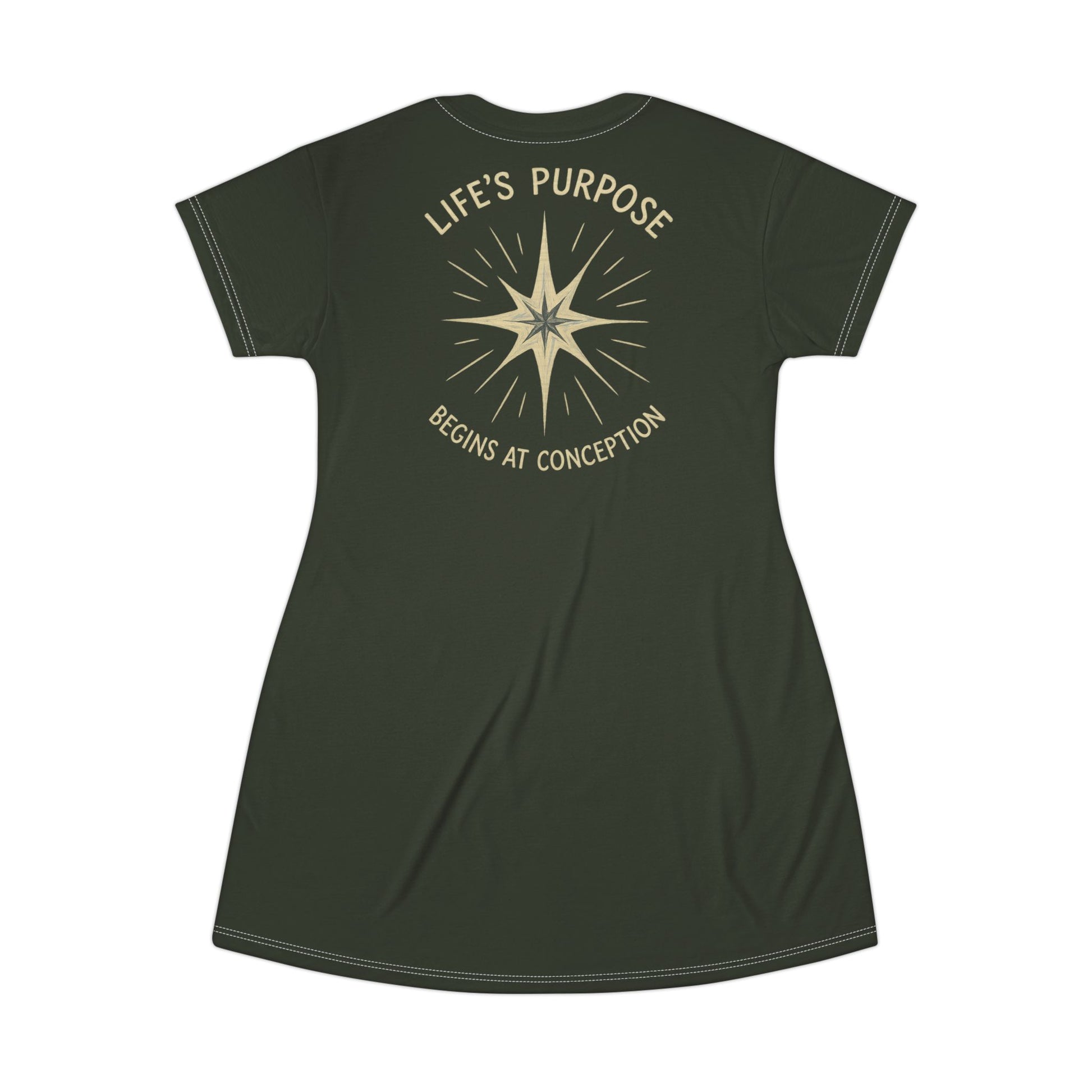 "Life's Purpose Begins at Conception #02", T-Shirt Dress (Black Mesa Green)