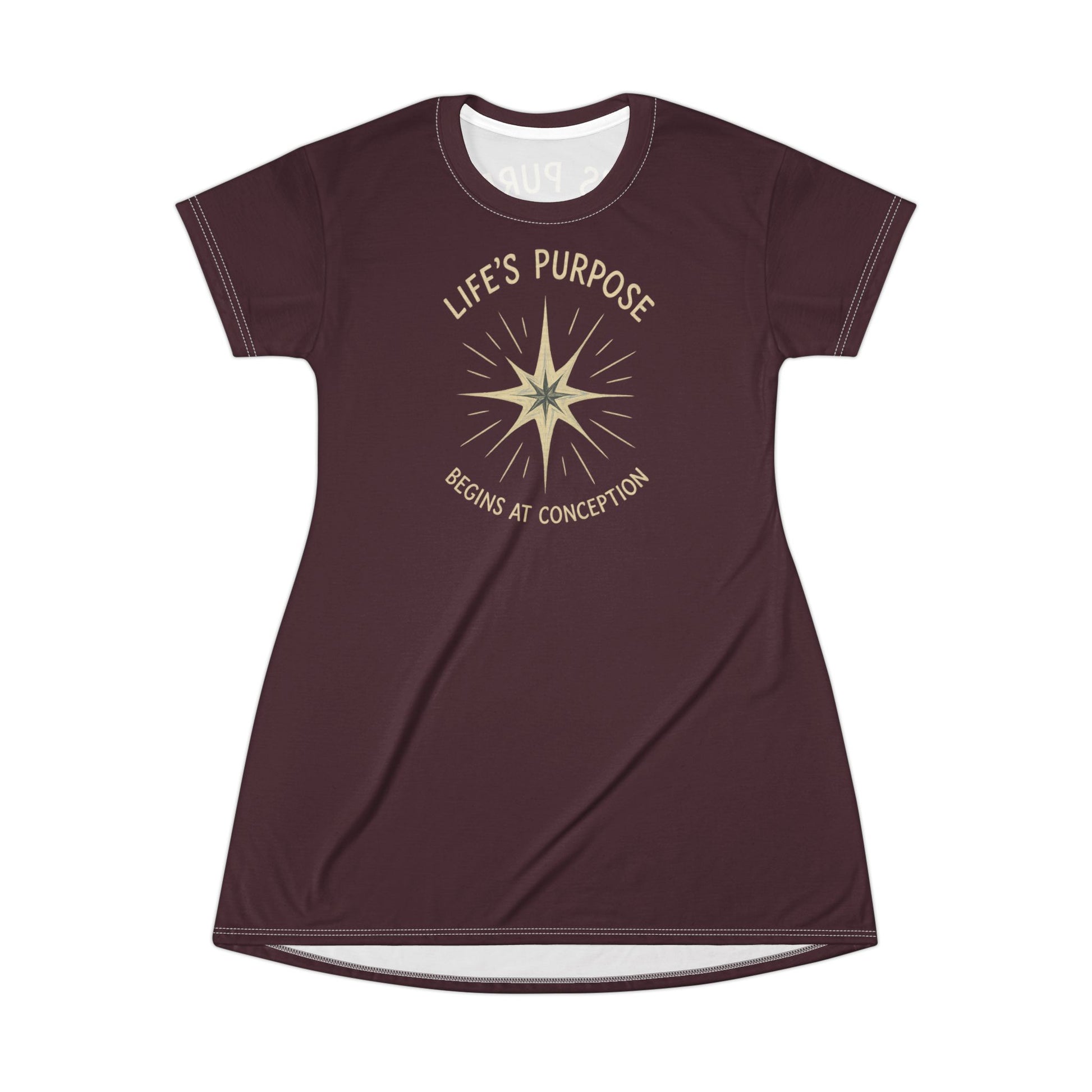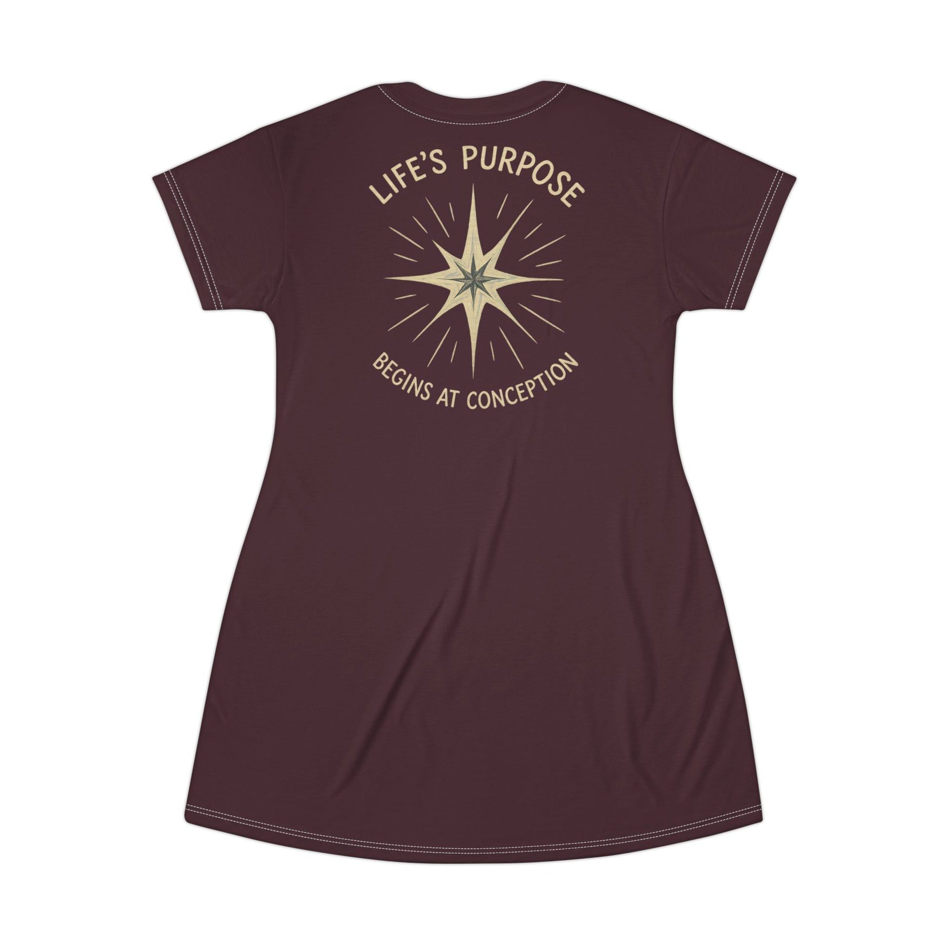 "Life's Purpose Begins at Conception #02", T-Shirt Dress (Black Raspberry)