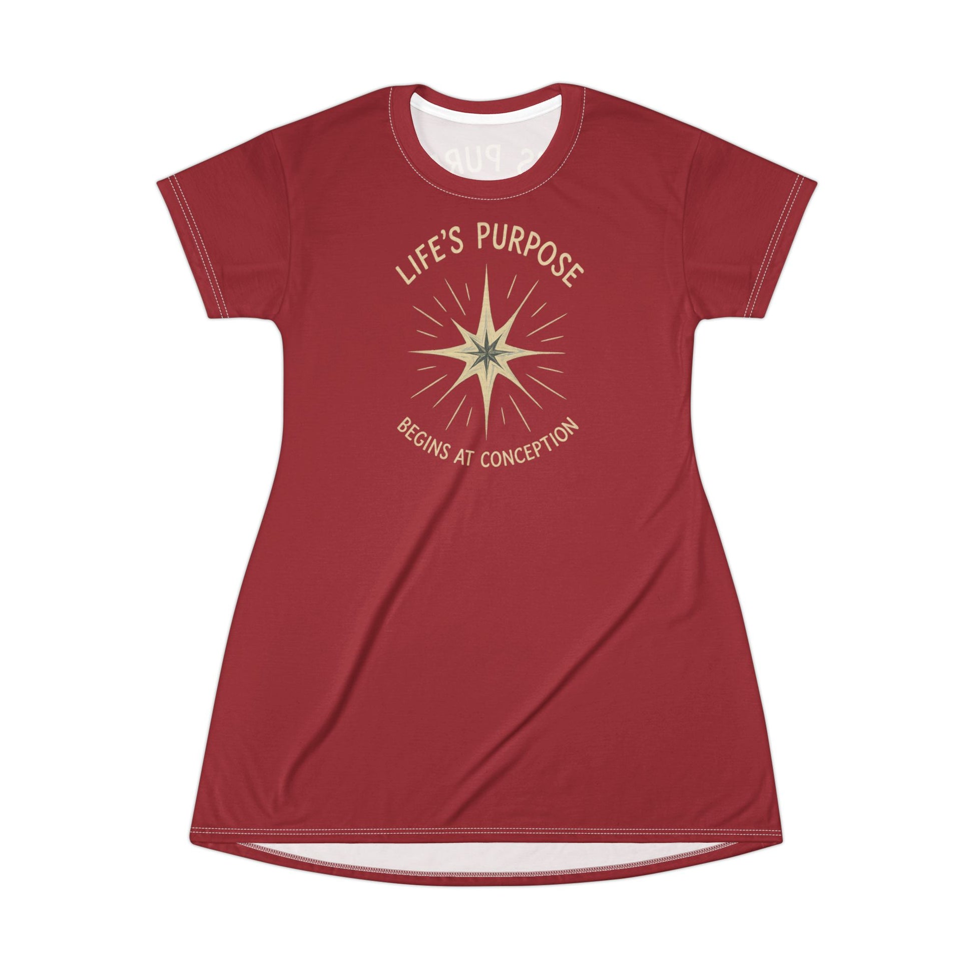 "Life's Purpose Begins at Conception #02", T-Shirt Dress (Cherry Red)