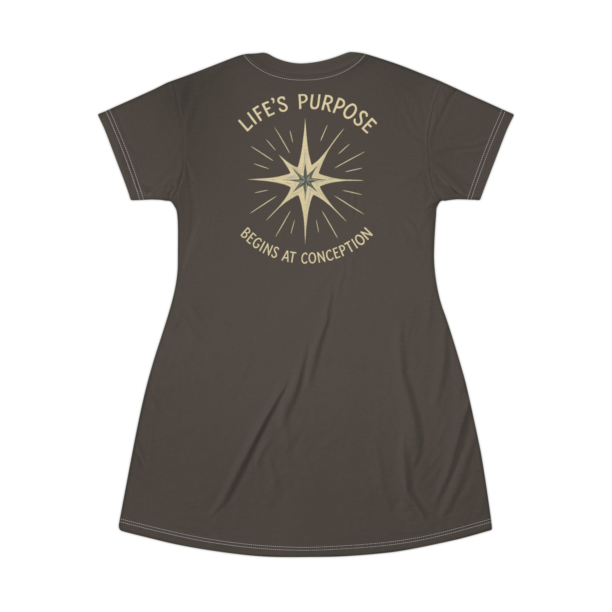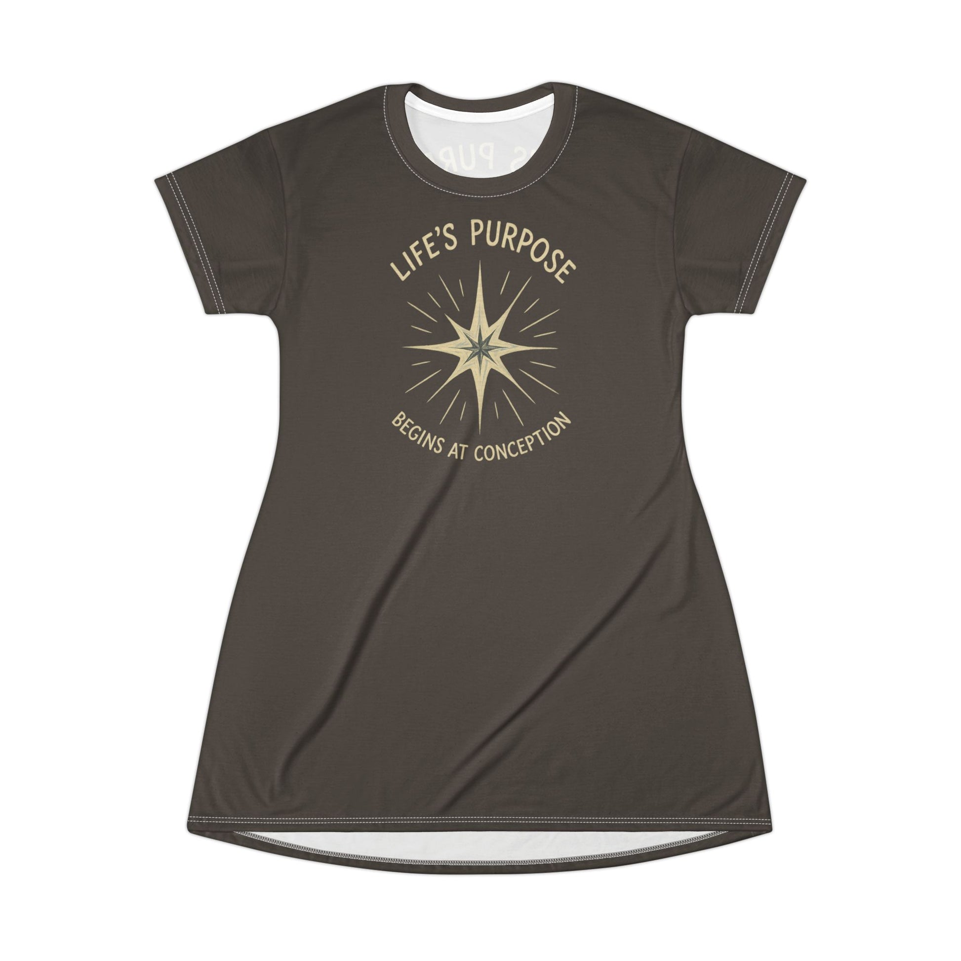 "Life's Purpose Begins at Conception #02", T-Shirt Dress (Dried Dates)