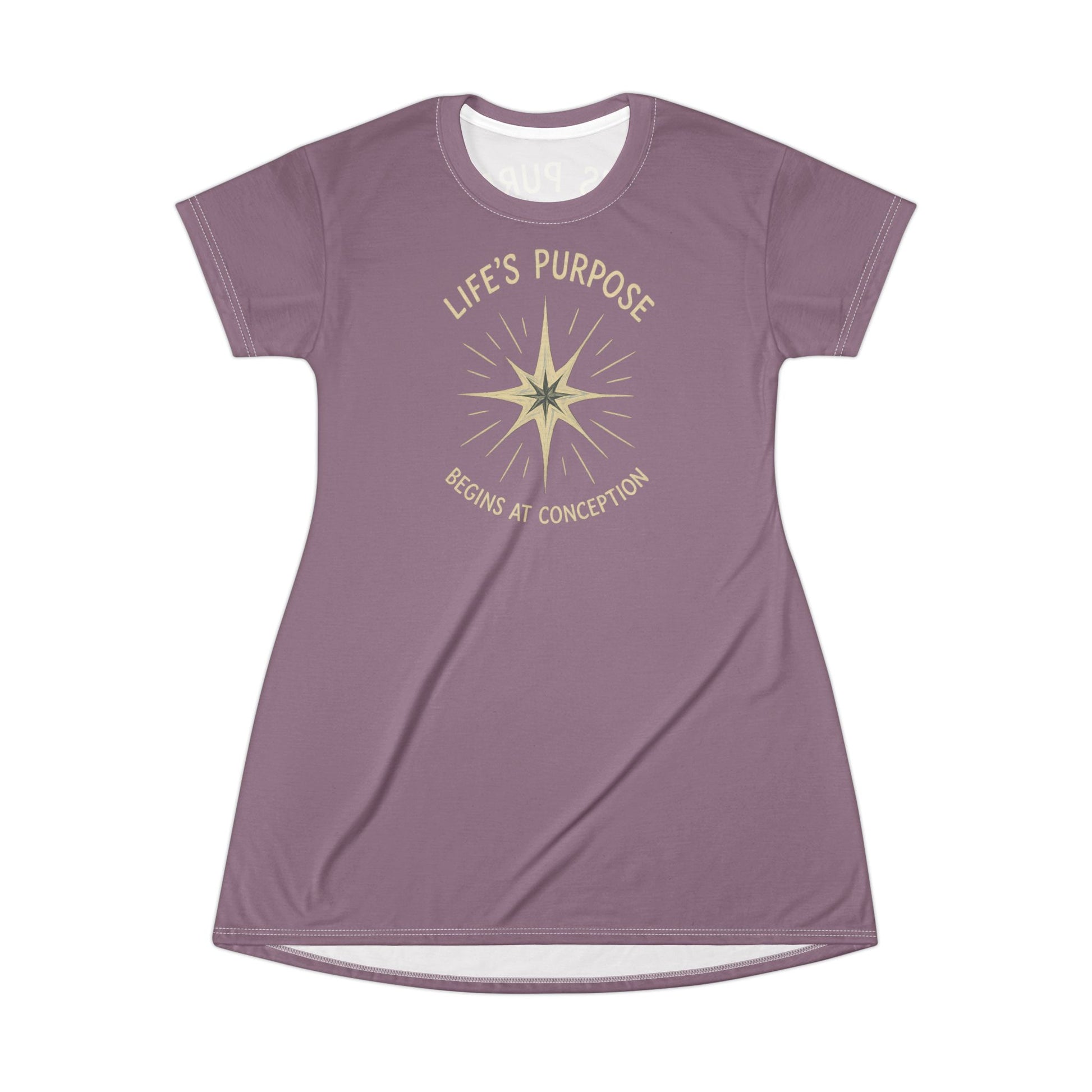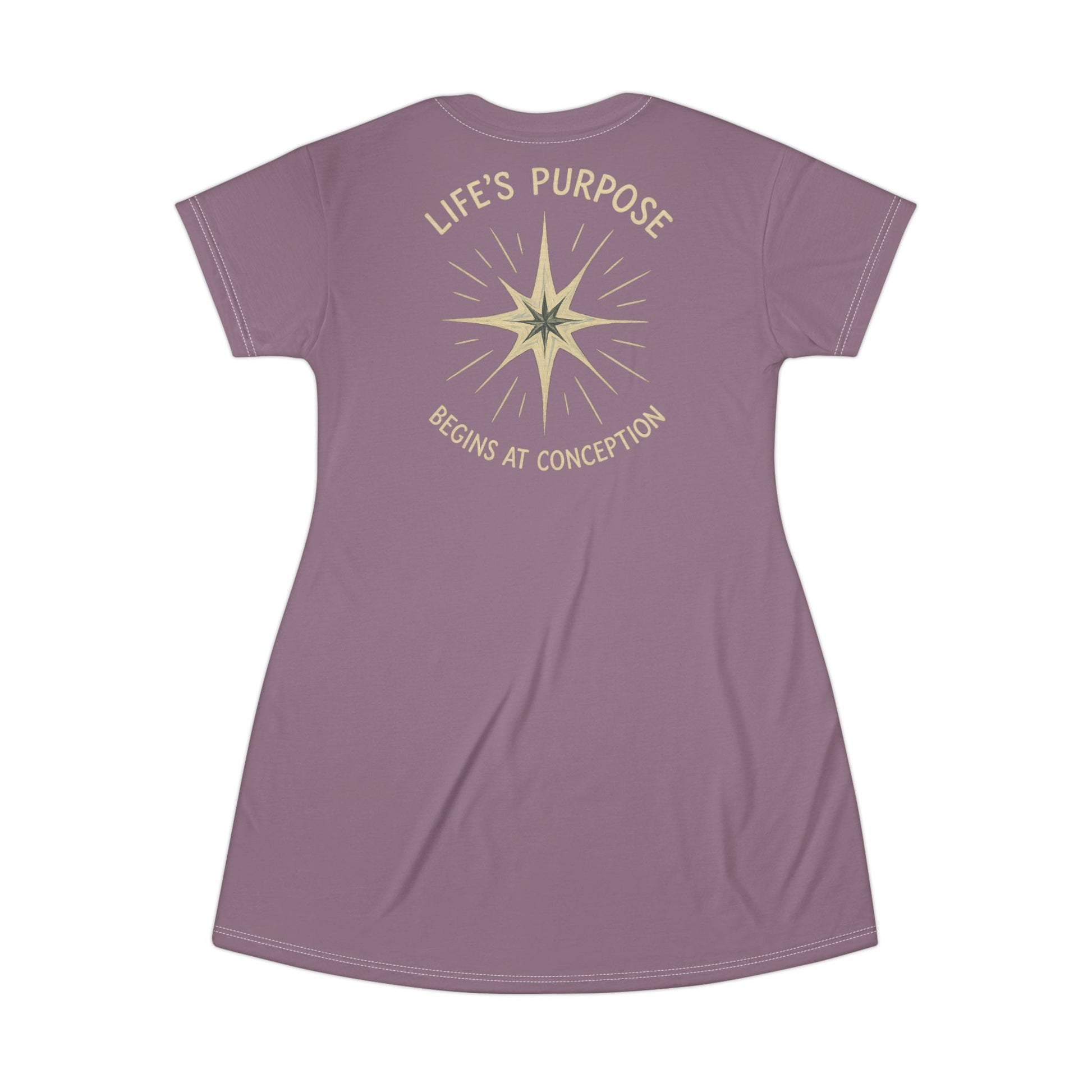 "Life's Purpose Begins at Conception #02", T-Shirt Dress (Mountbatten Mauve)