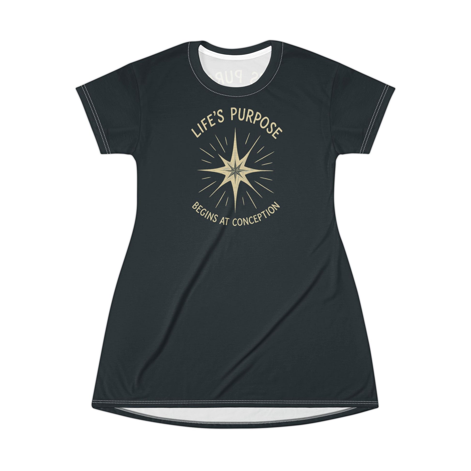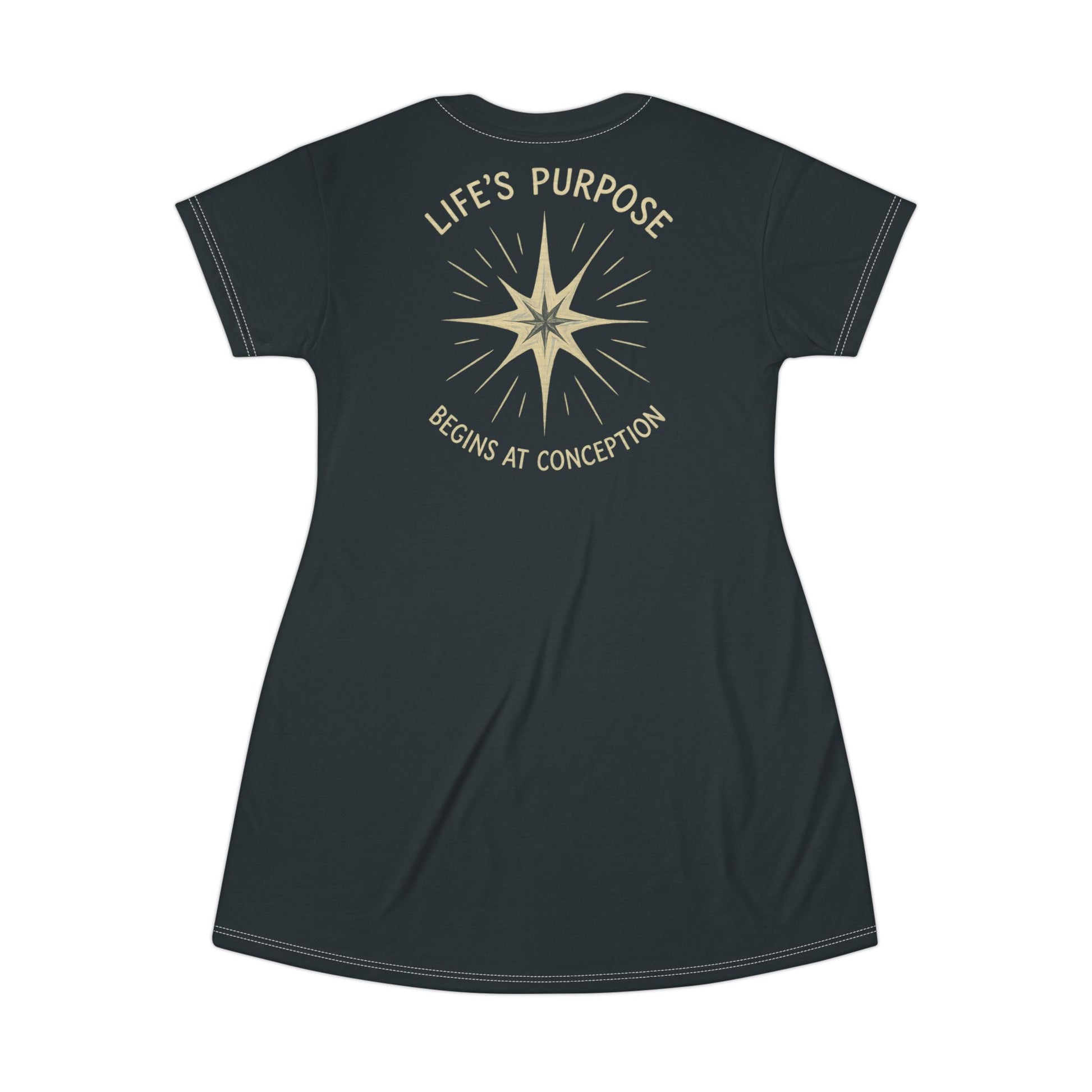 "Life's Purpose Begins at Conception #02", T-Shirt Dress (Eucalyptus Green)
