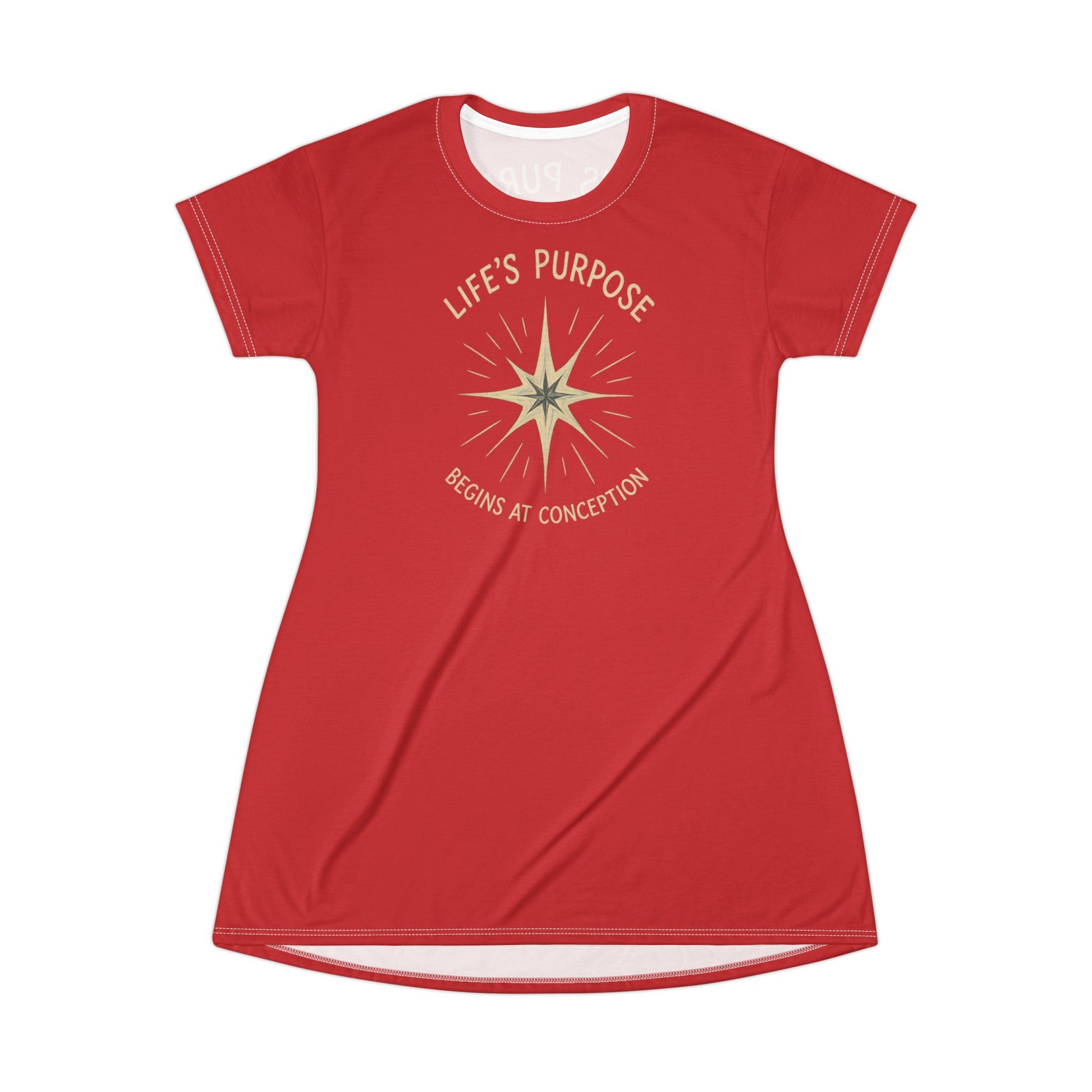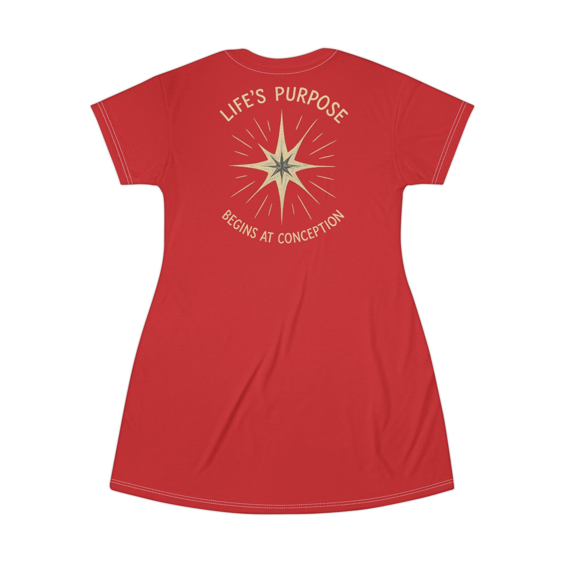 "Life's Purpose Begins at Conception #02", T-Shirt Dress (Blood Orange)