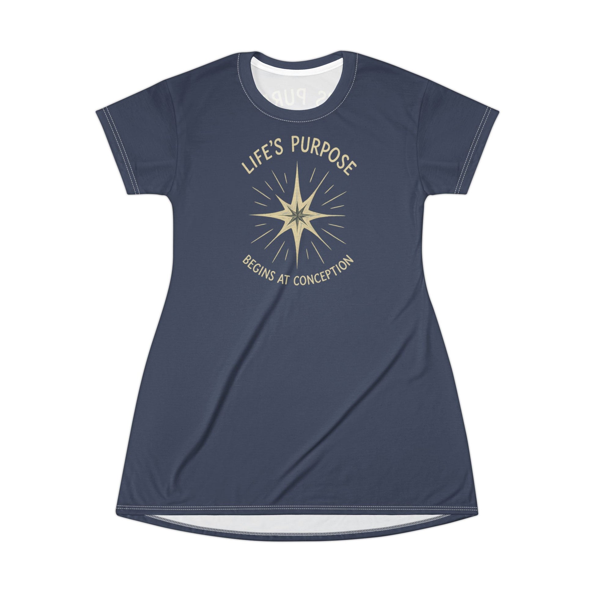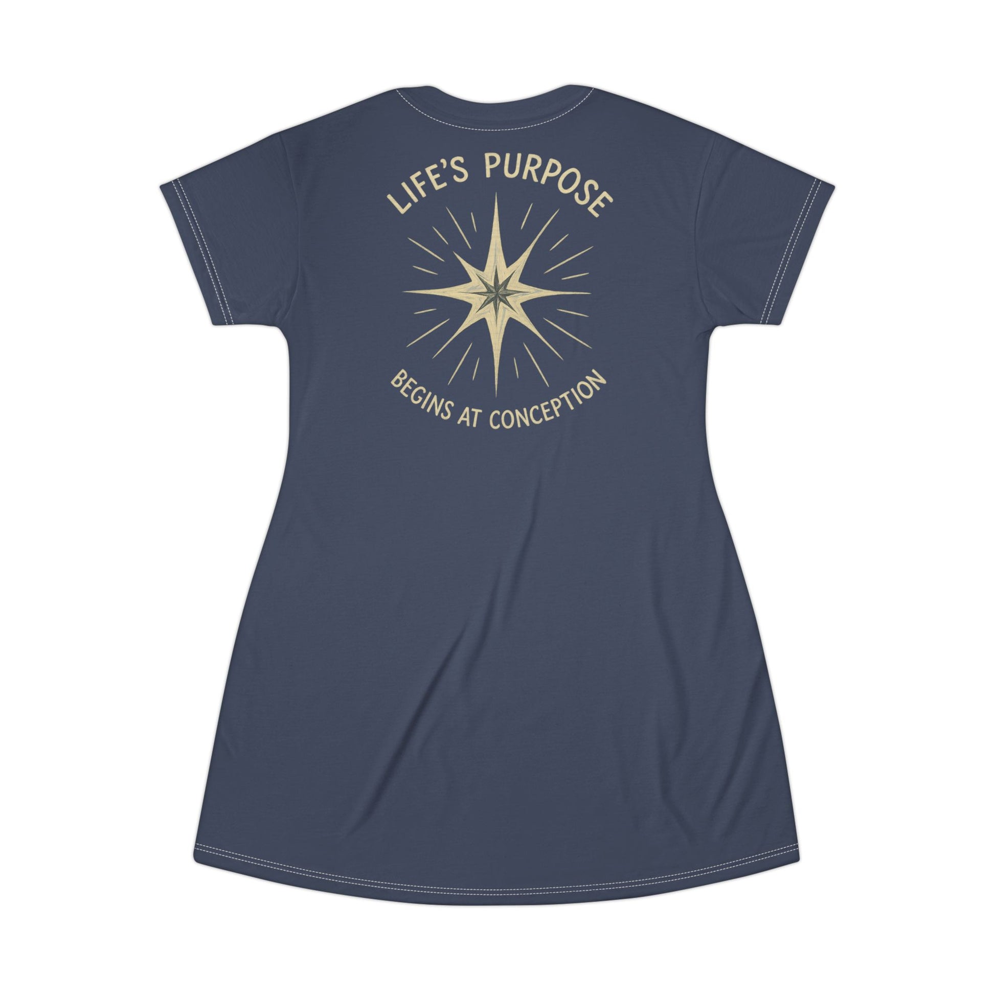 "Life's Purpose Begins at Conception #02", T-Shirt Dress (Diplomat Grey)