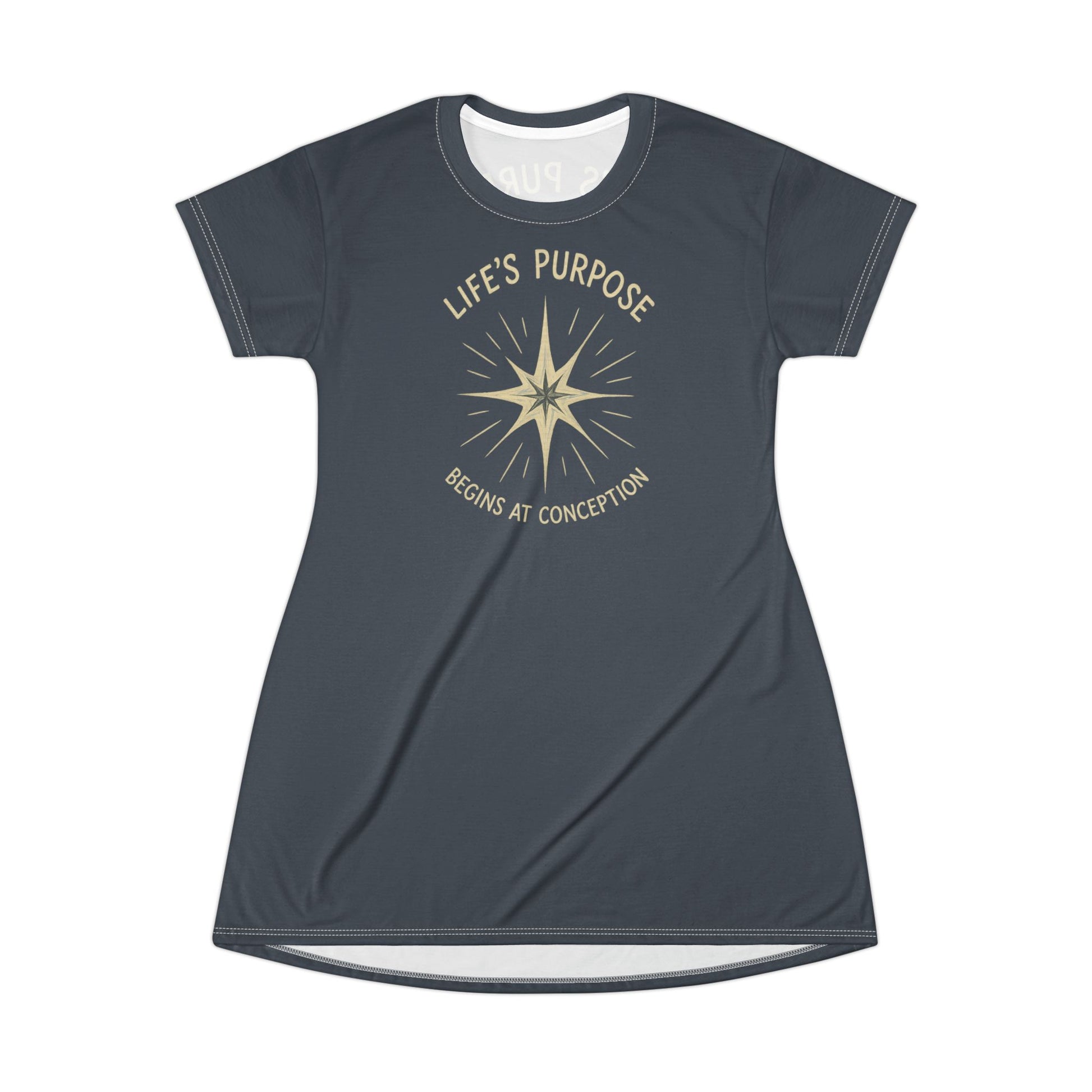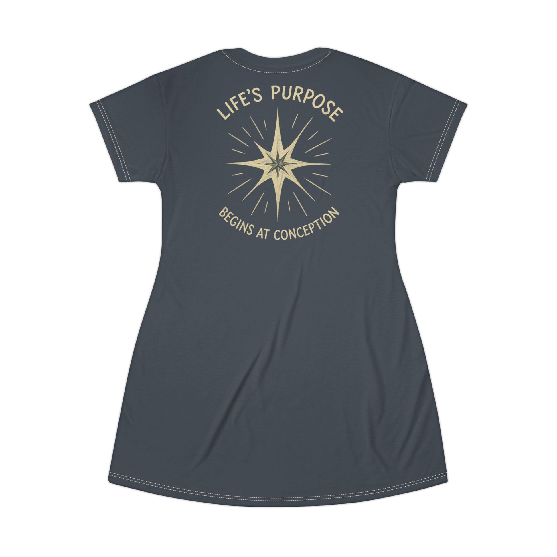"Life's Purpose Begins at Conception #02", T-Shirt Dress (Hearthstone Grey)