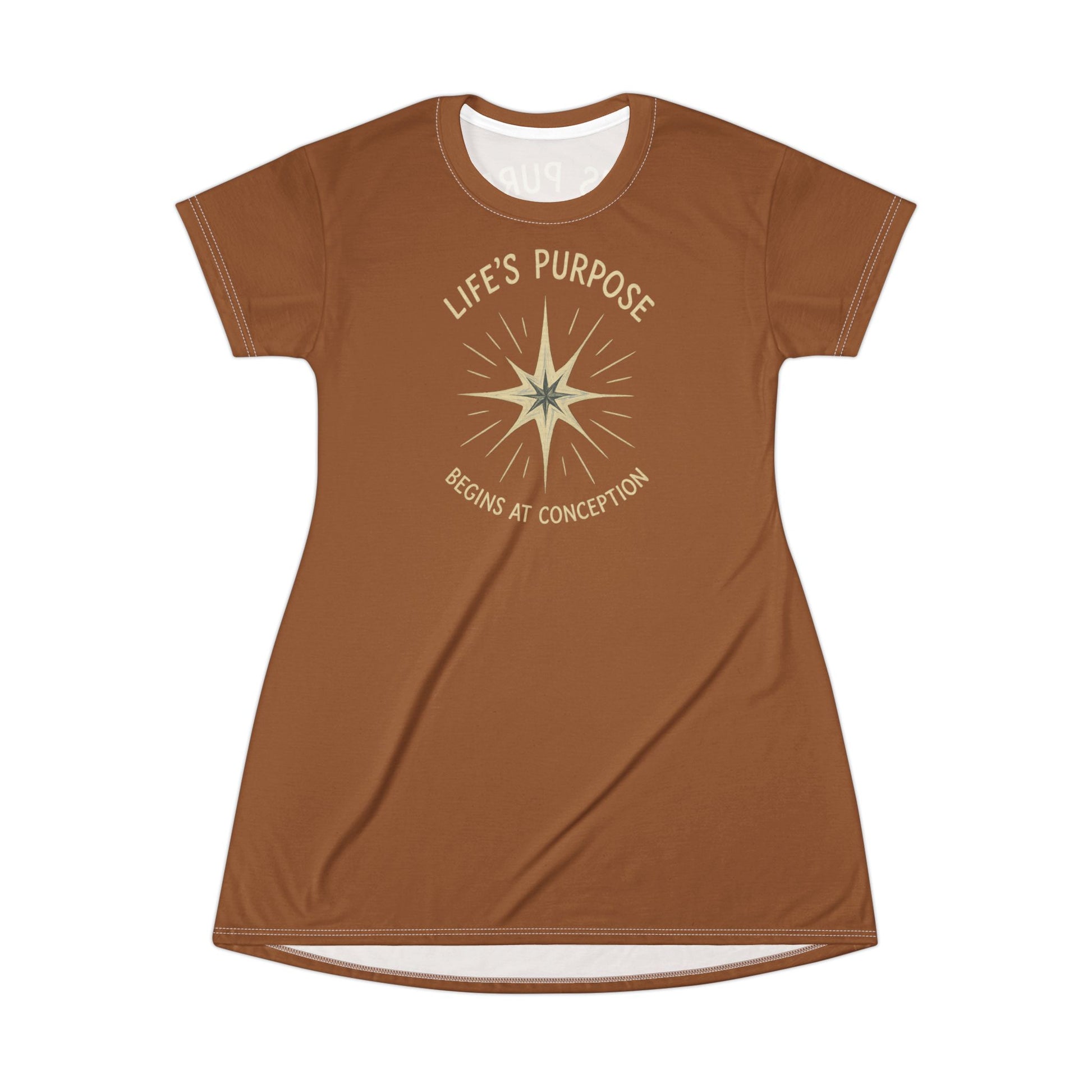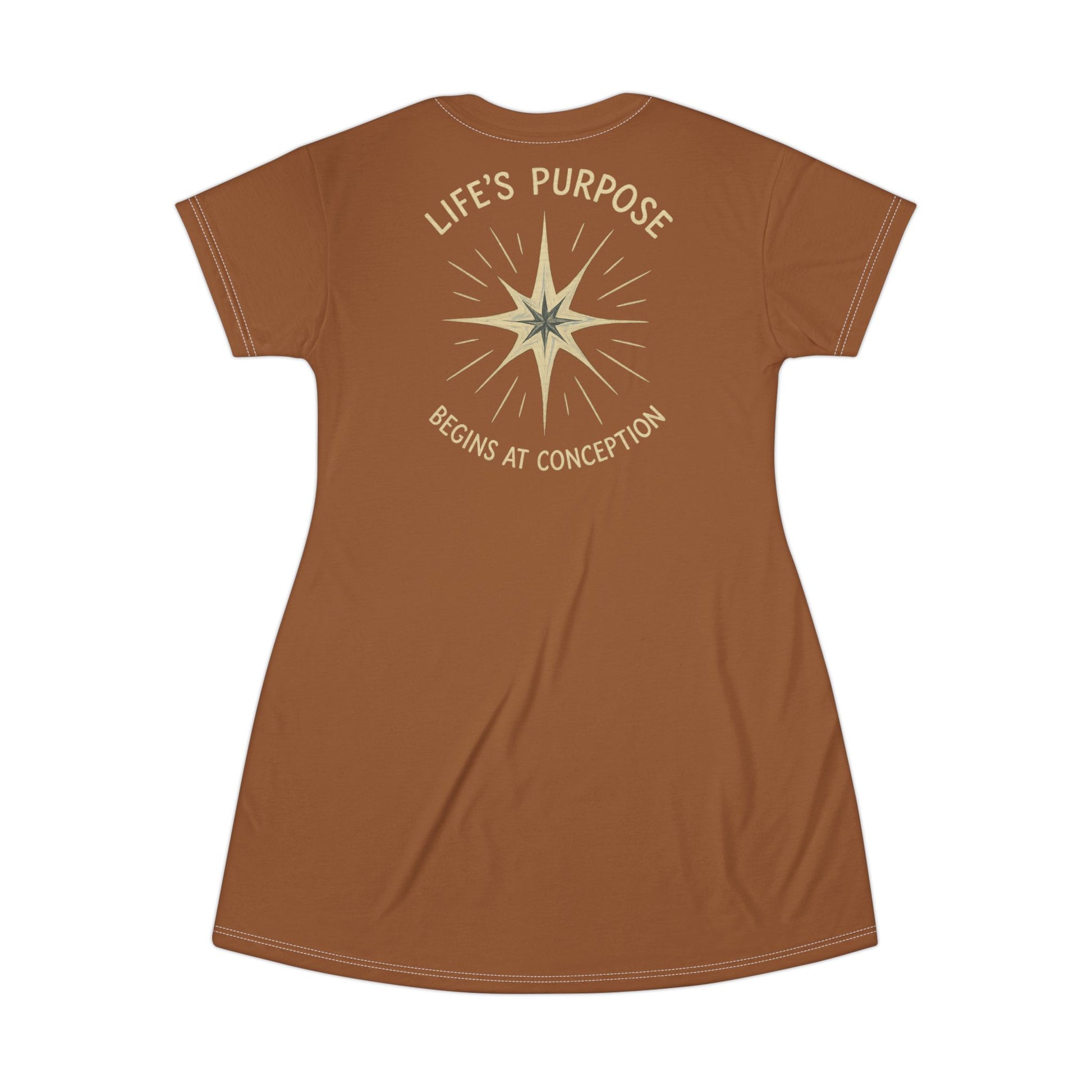 "Life's Purpose Begins at Conception #02", T-Shirt Dress (Mammoth Wool)