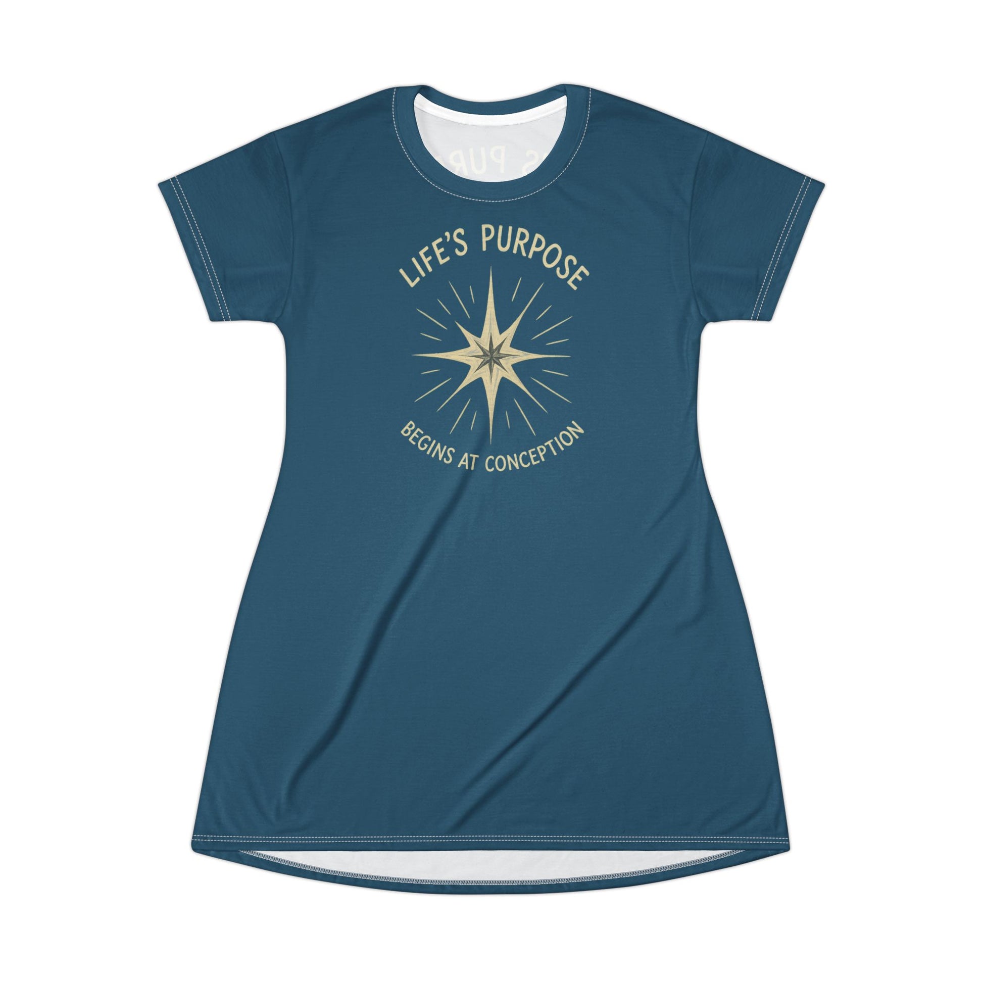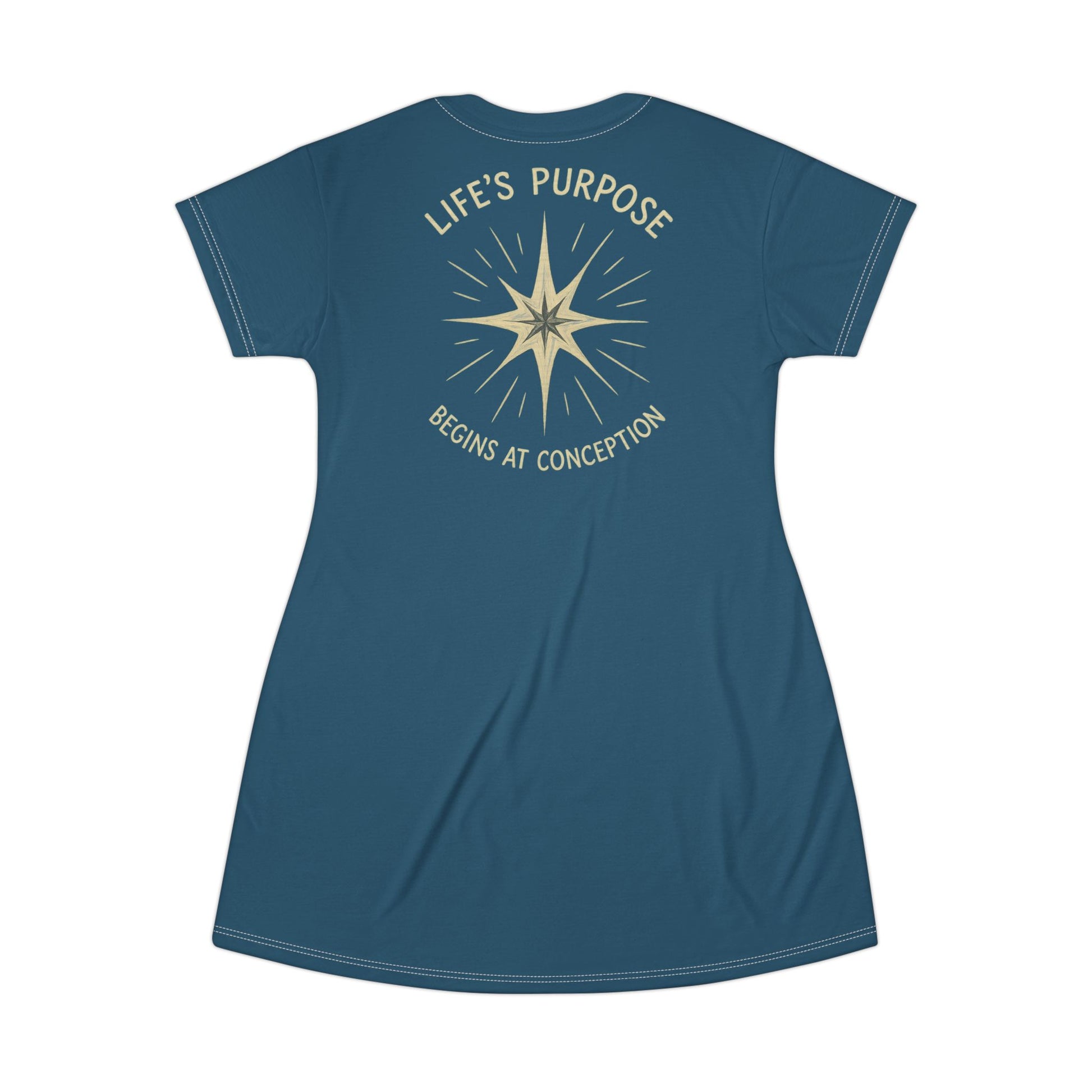 "Life's Purpose Begins at Conception #02", T-Shirt Dress (Manannán Blue)