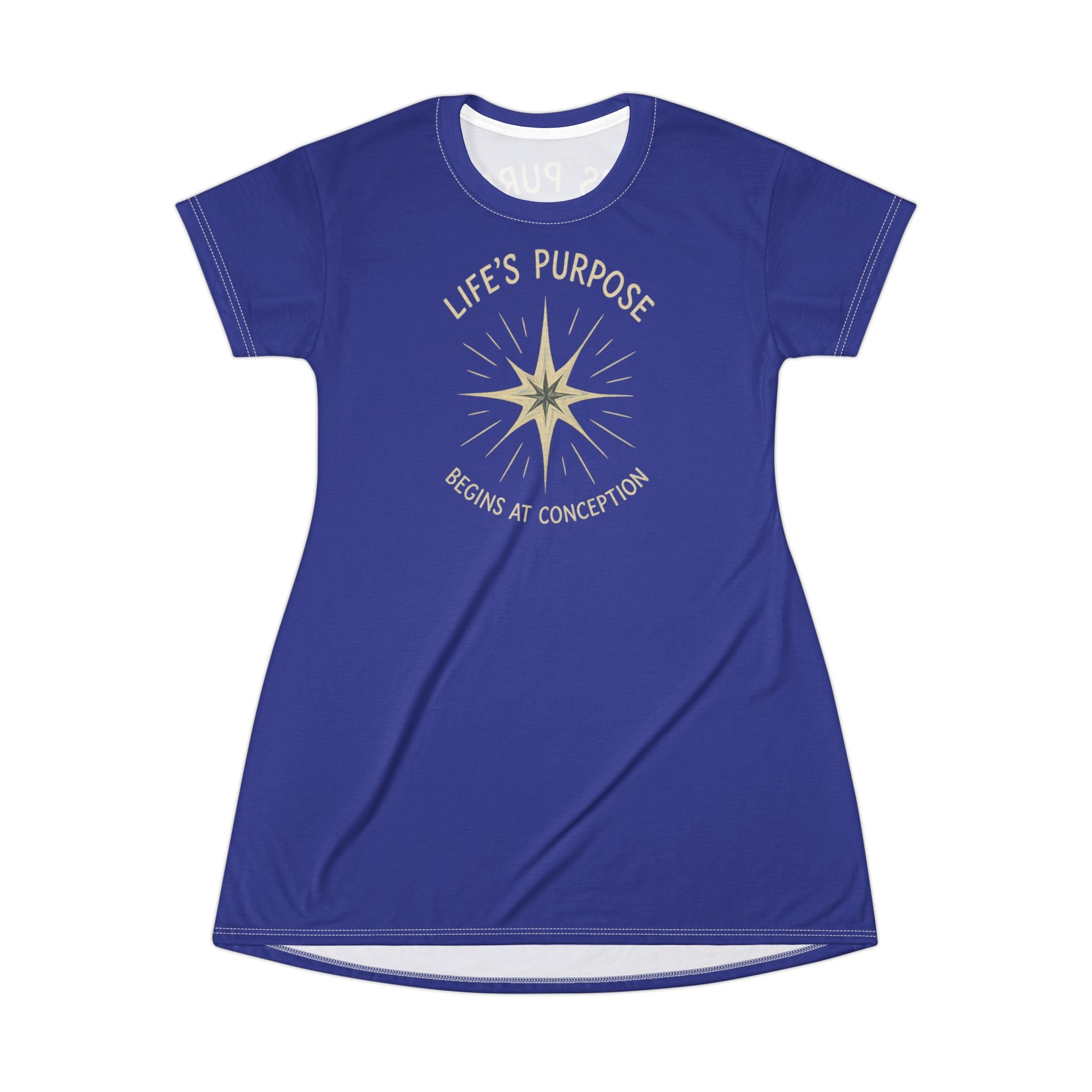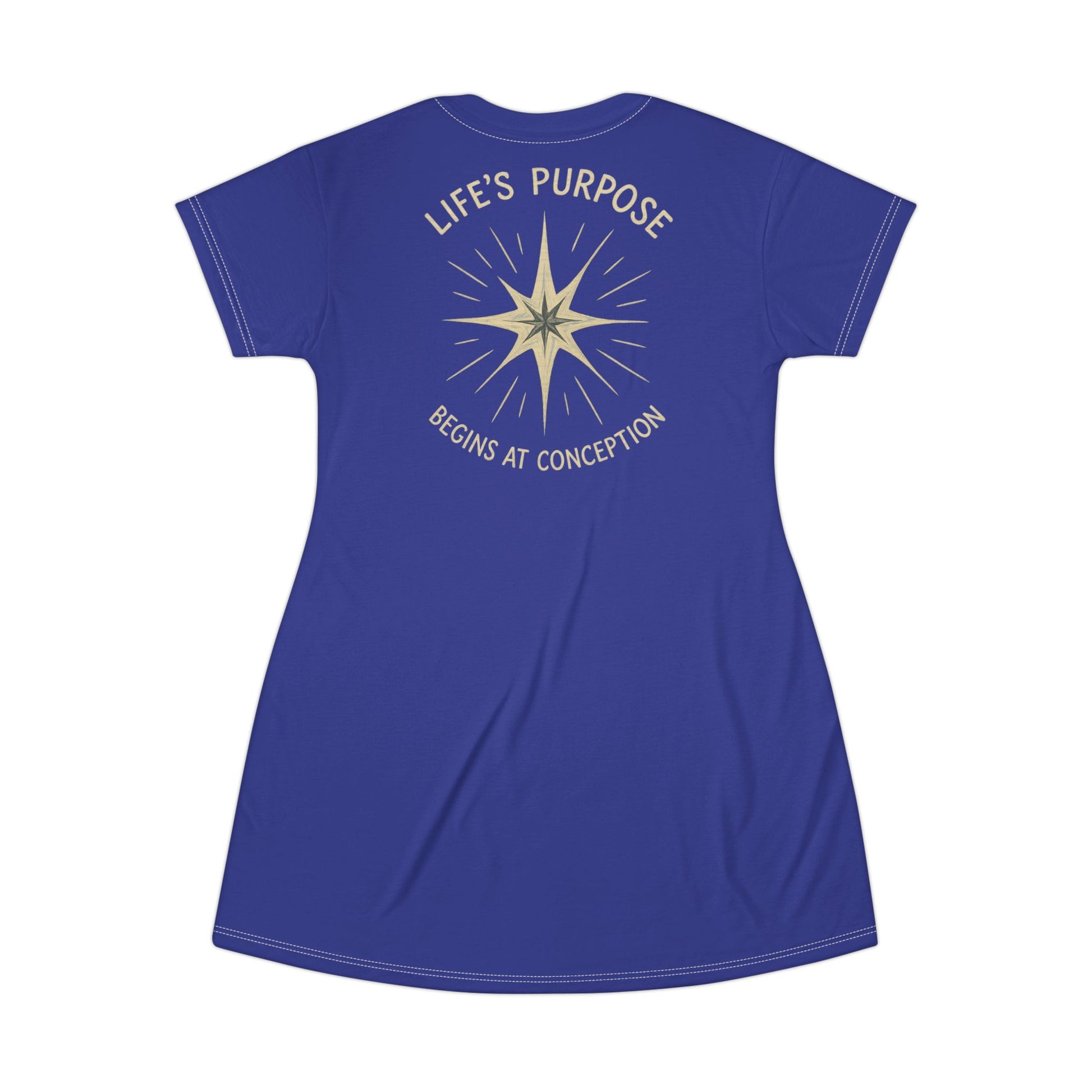 "Life's Purpose Begins at Conception #02", T-Shirt Dress (North Star Blue)
