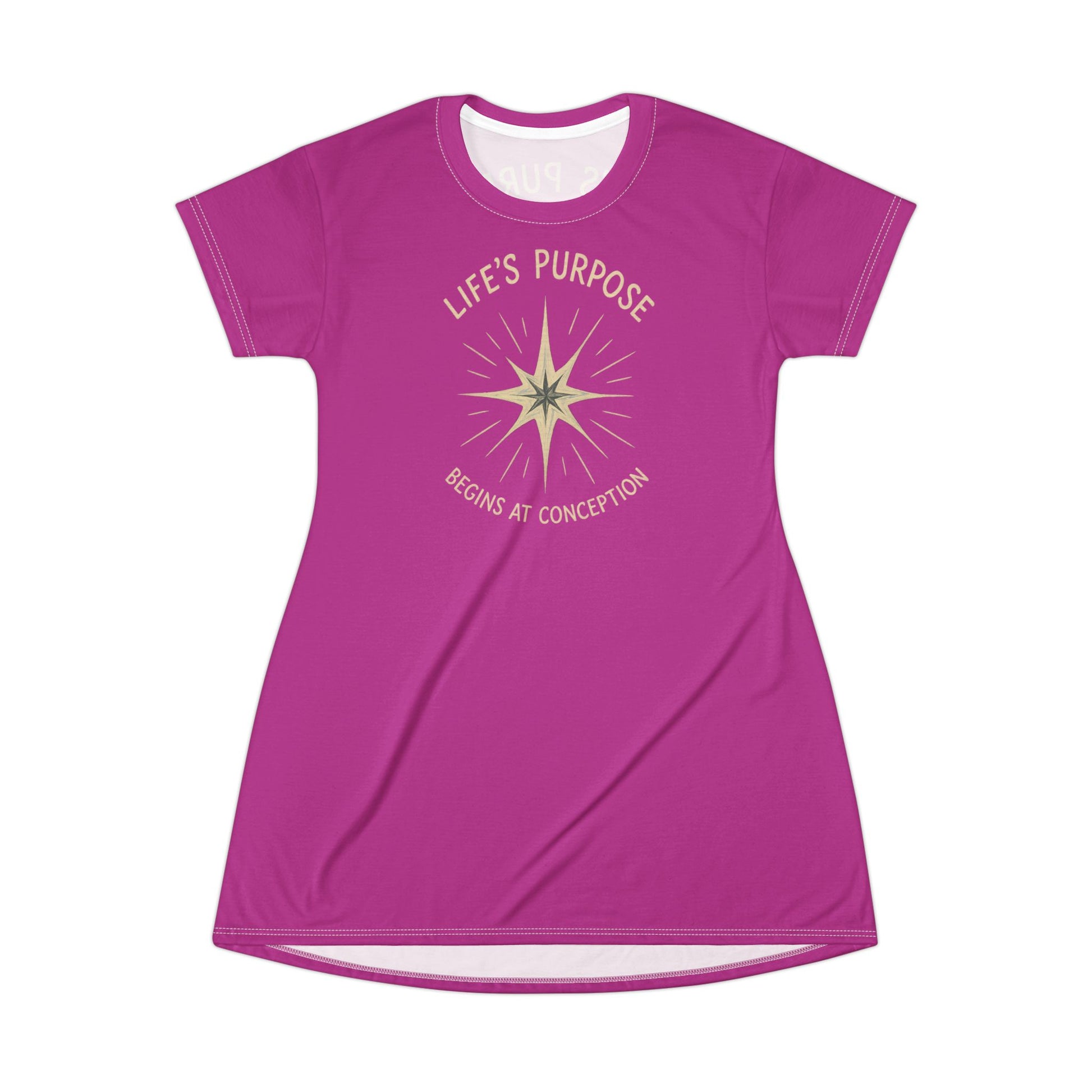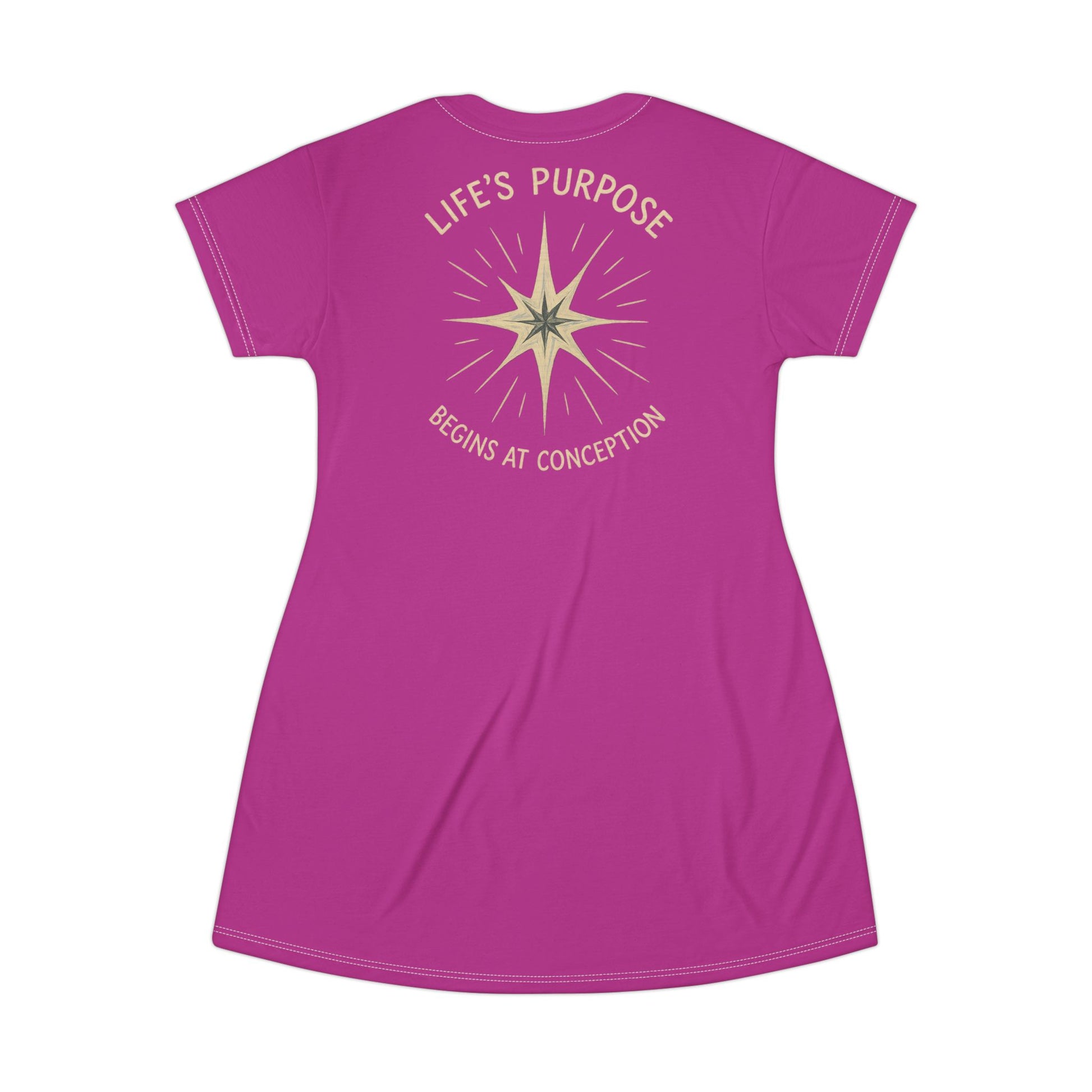 "Life's Purpose Begins at Conception #02", T-Shirt Dress (Prairie Foxglove)