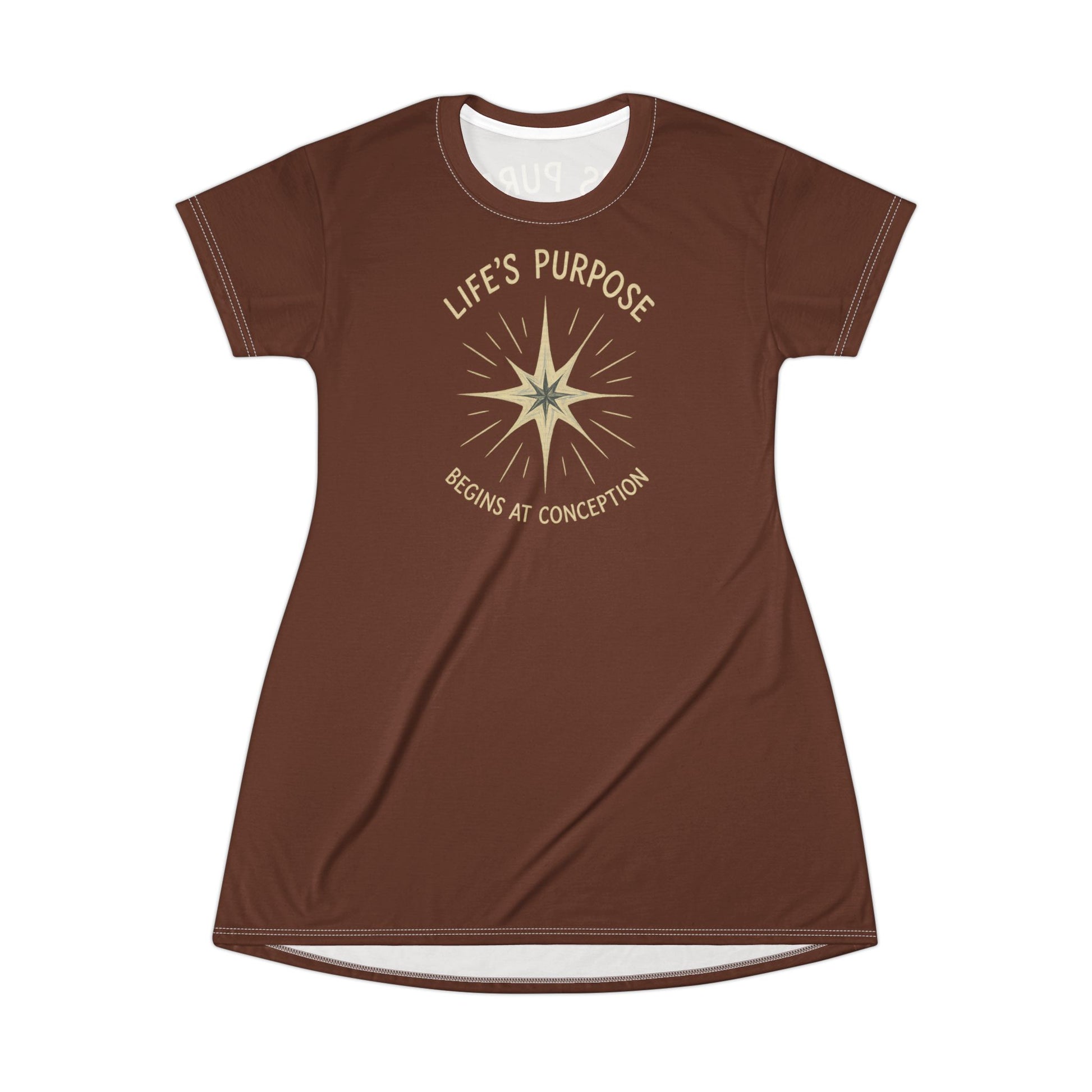 "Life's Purpose Begins at Conception #02", T-Shirt Dress (Raw Chocolate)