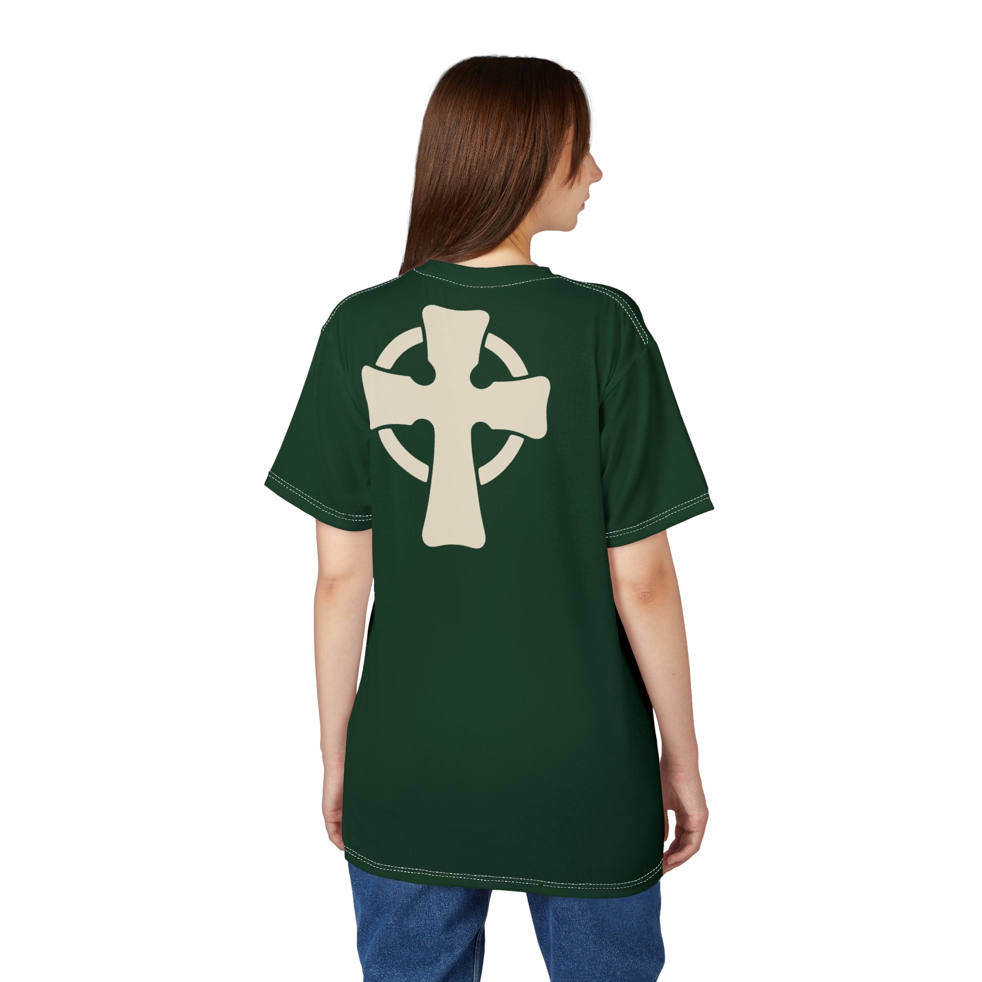 Back: Celtic High Cross, centered high for balanced proportion across sizes