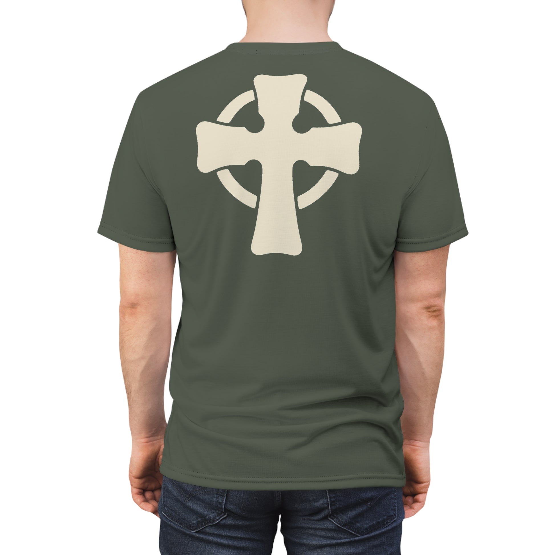 Back: Celtic High Cross, centered high for balanced proportion across sizes