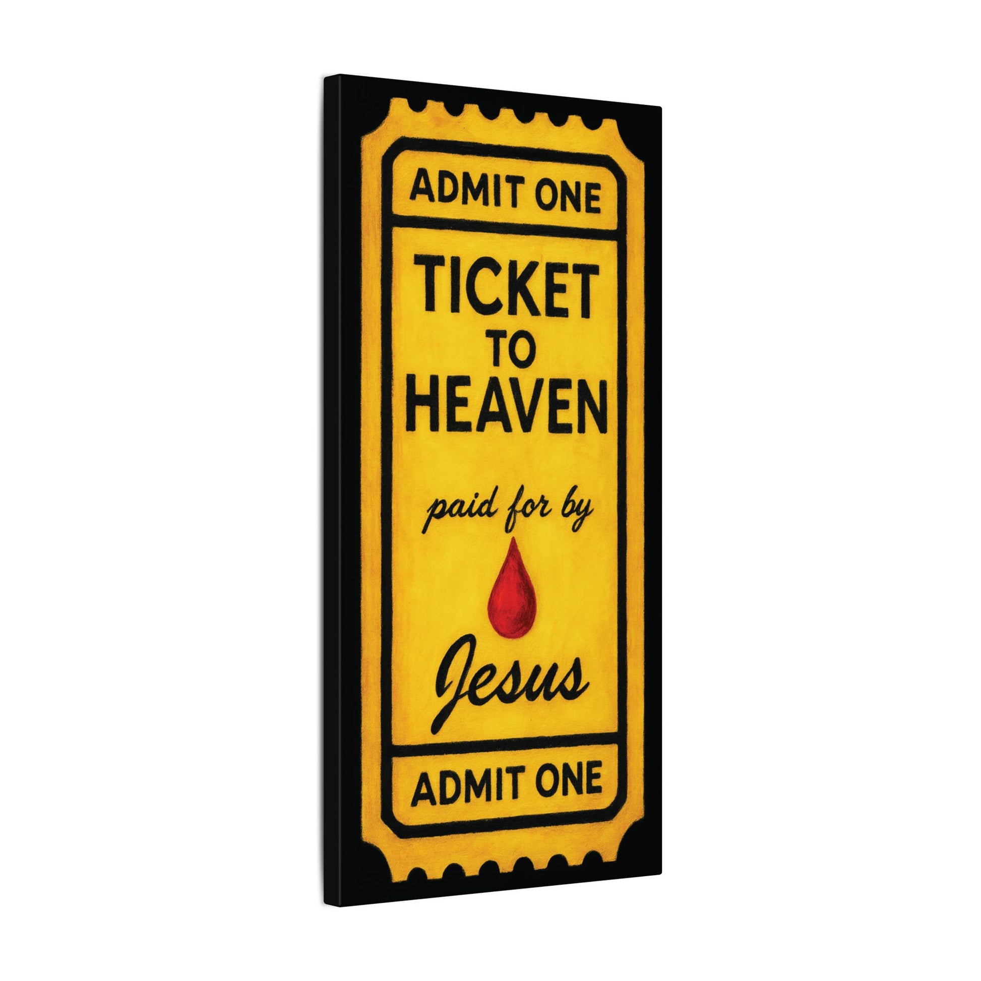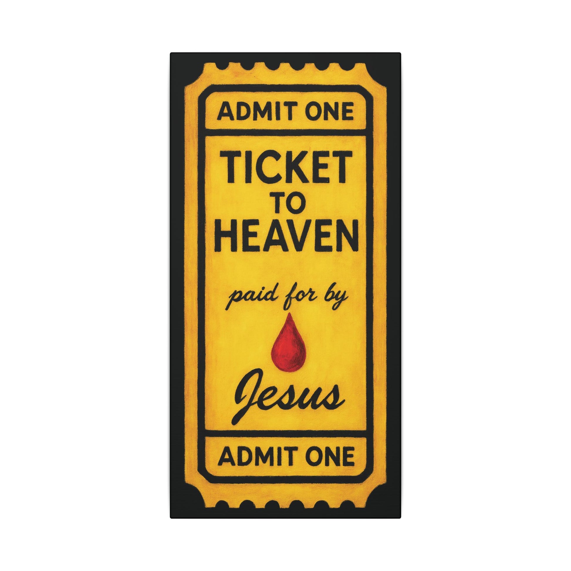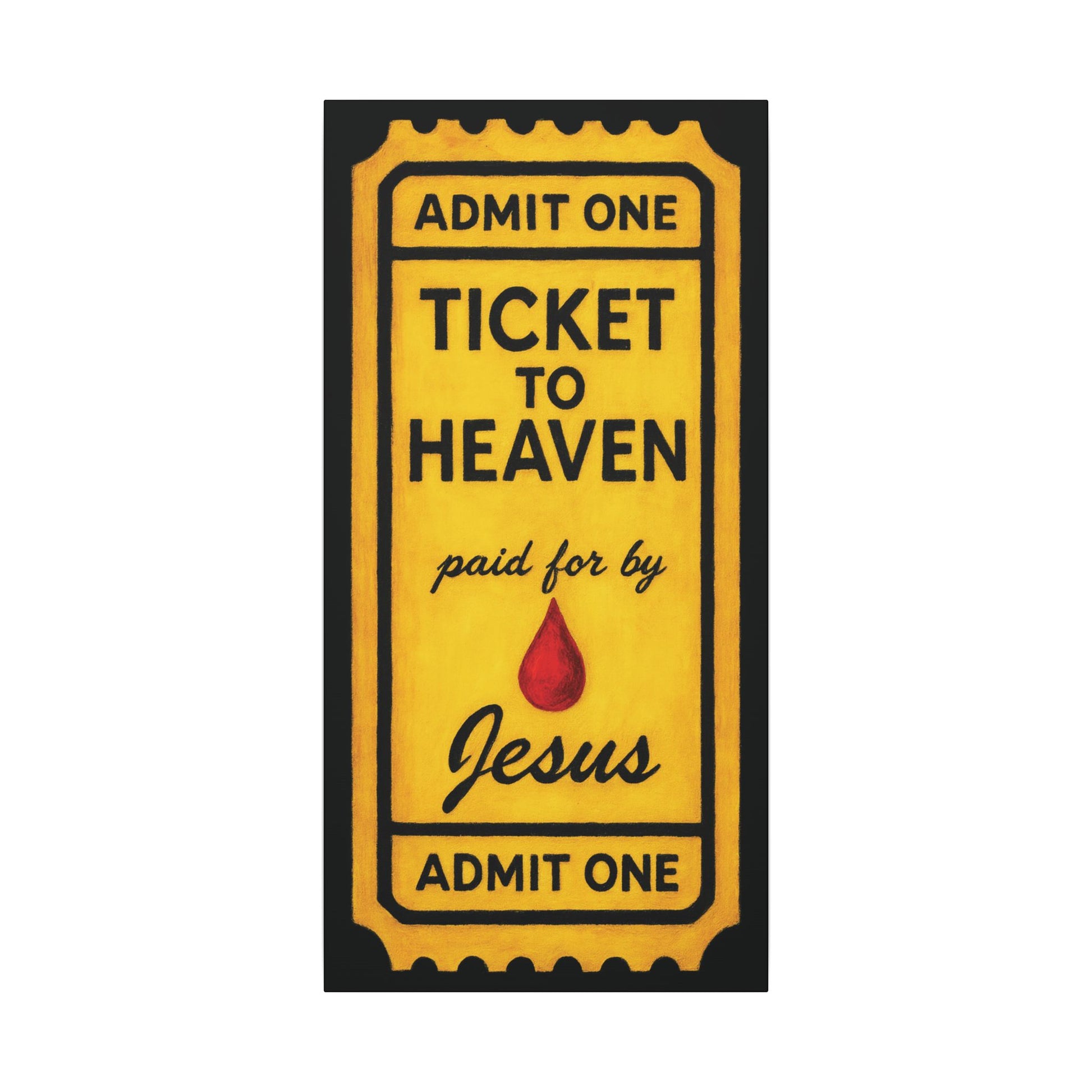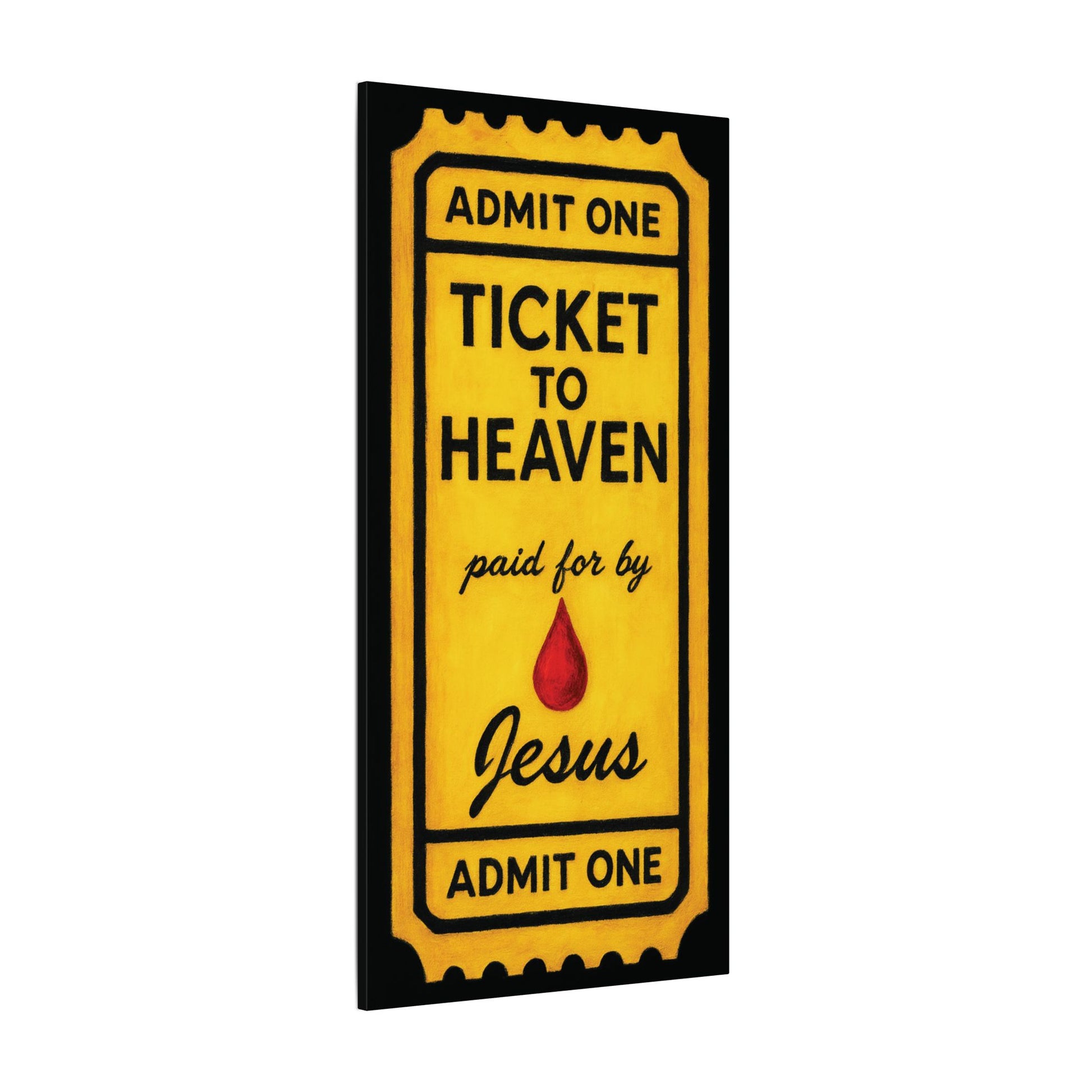This piece takes the familiar idea of a ticket and turns it into a clear Gospel statement.